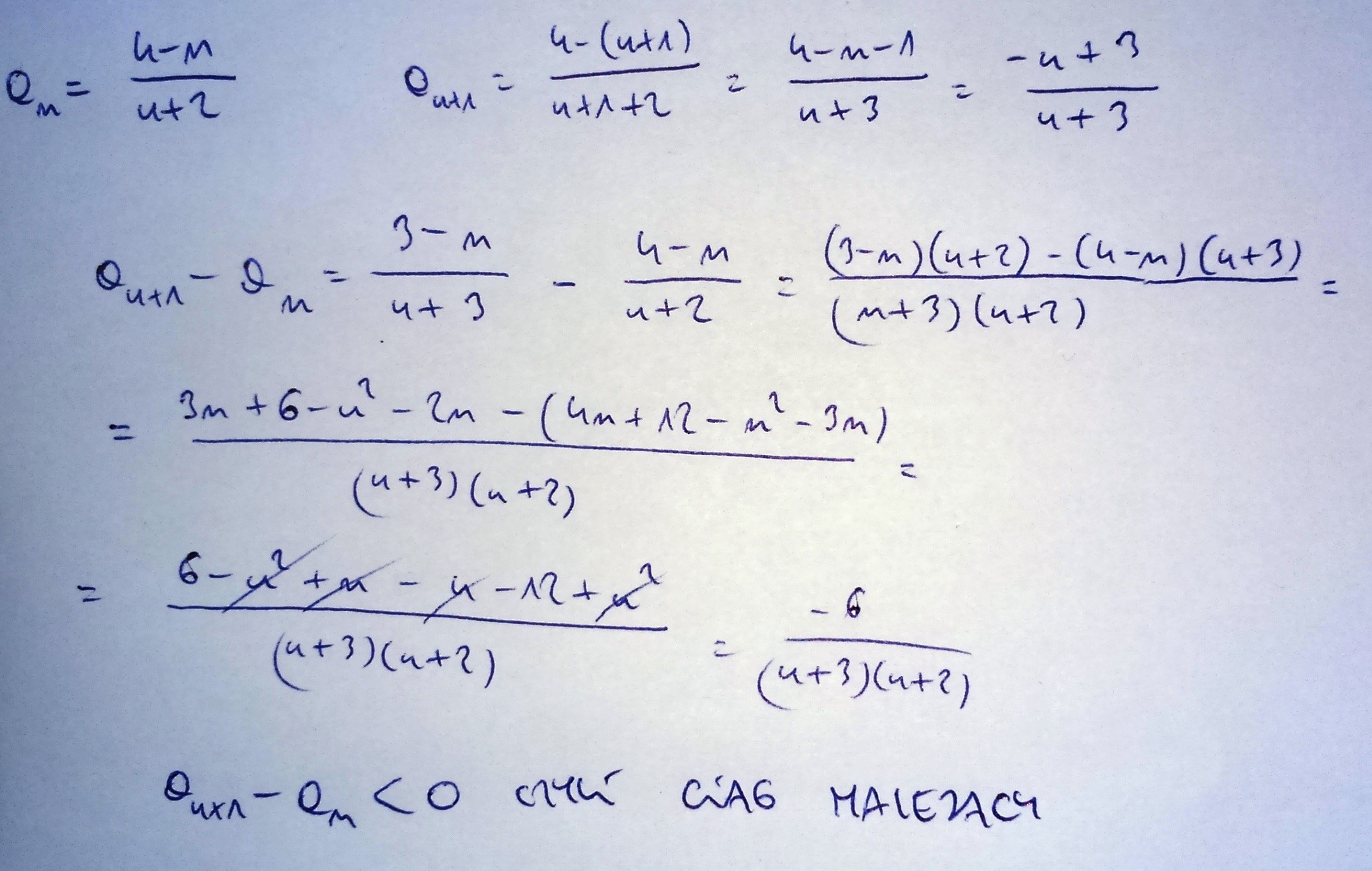 1). Zbadaj monotoniczność ciągu an = (4-n)/(n+2)