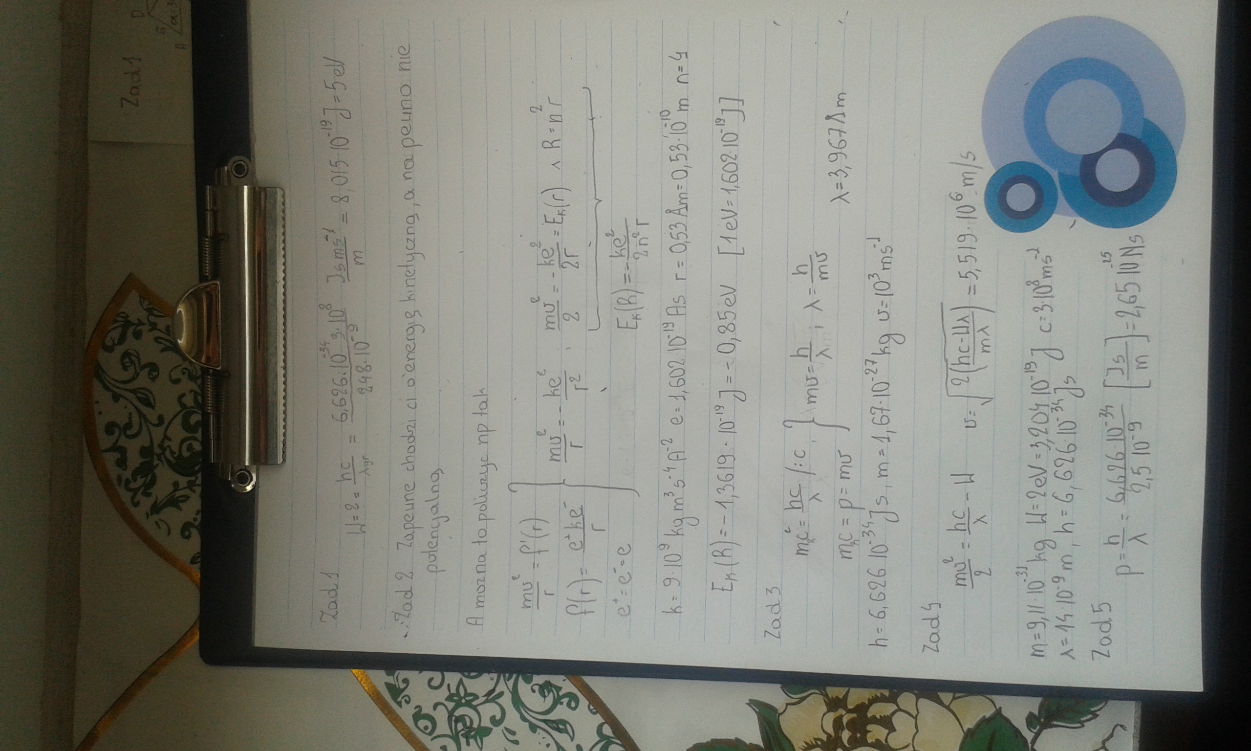 zad2. Oblicz energię elektronu na czwartej orbicie wodoru.
