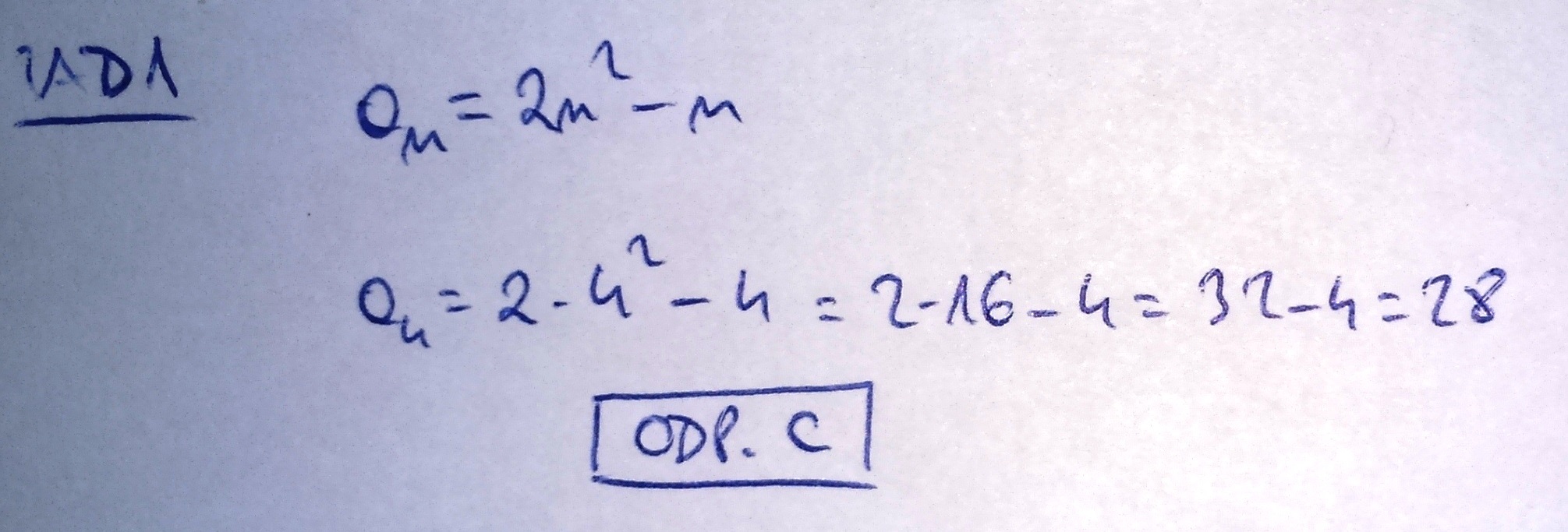 Zad.1. Czwarty wyraz ciągu (an) danego wzorem an =2n 2-n jest równy: