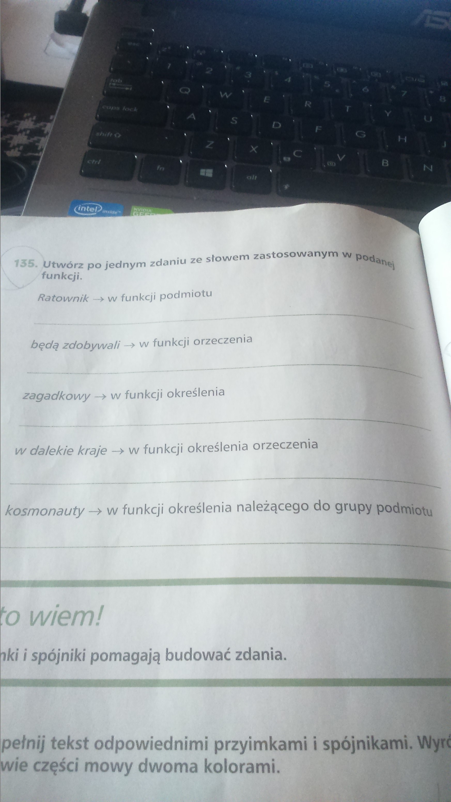 utwórz po jednym zdaniu ze słowem zastosowanym w podanej funkcji