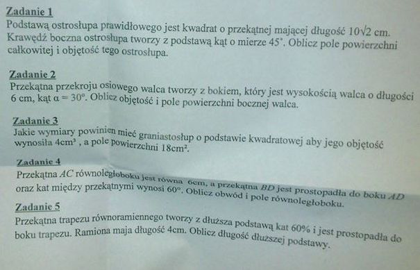 Podziel proszę zadania po jednym - wymagają one rysunków (szczególnie zadanie 5) i sporo pracy, bo są trudne.