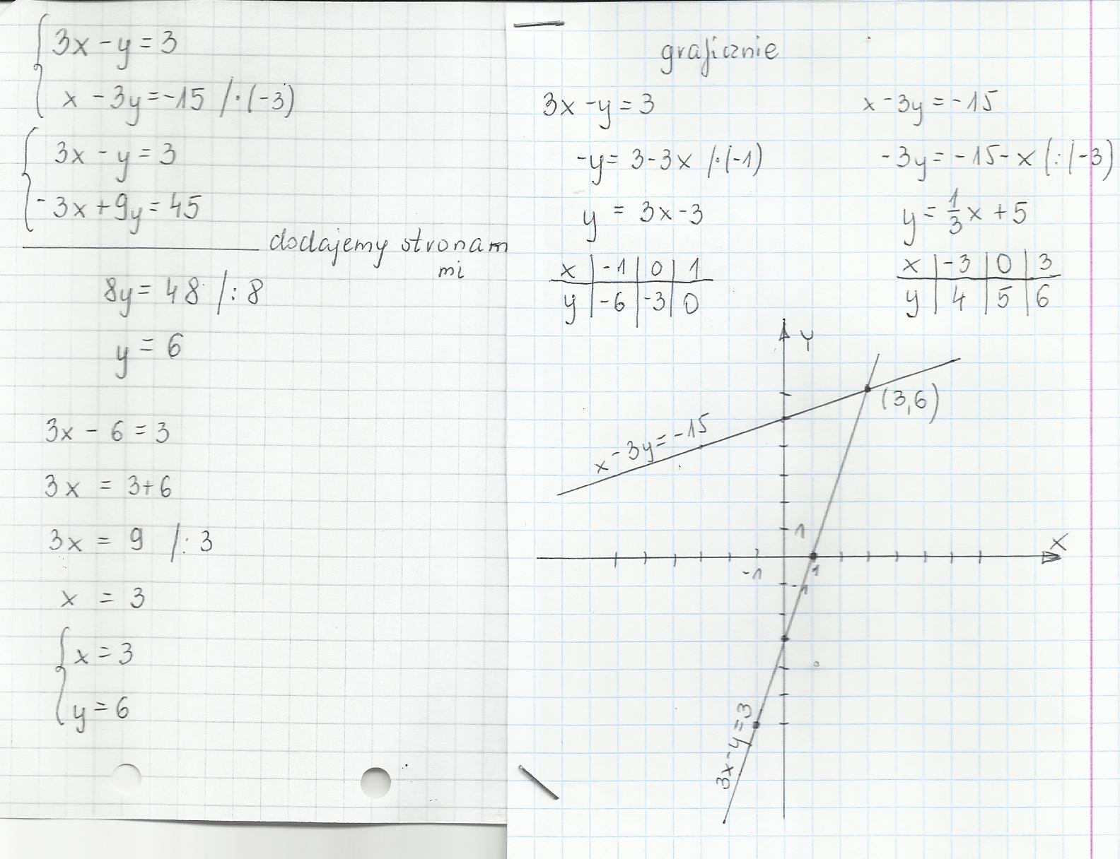 Zad.1 Rozwiąż algebraicznie i graficznie uklad równań;3x-y=3,x-3y=-15