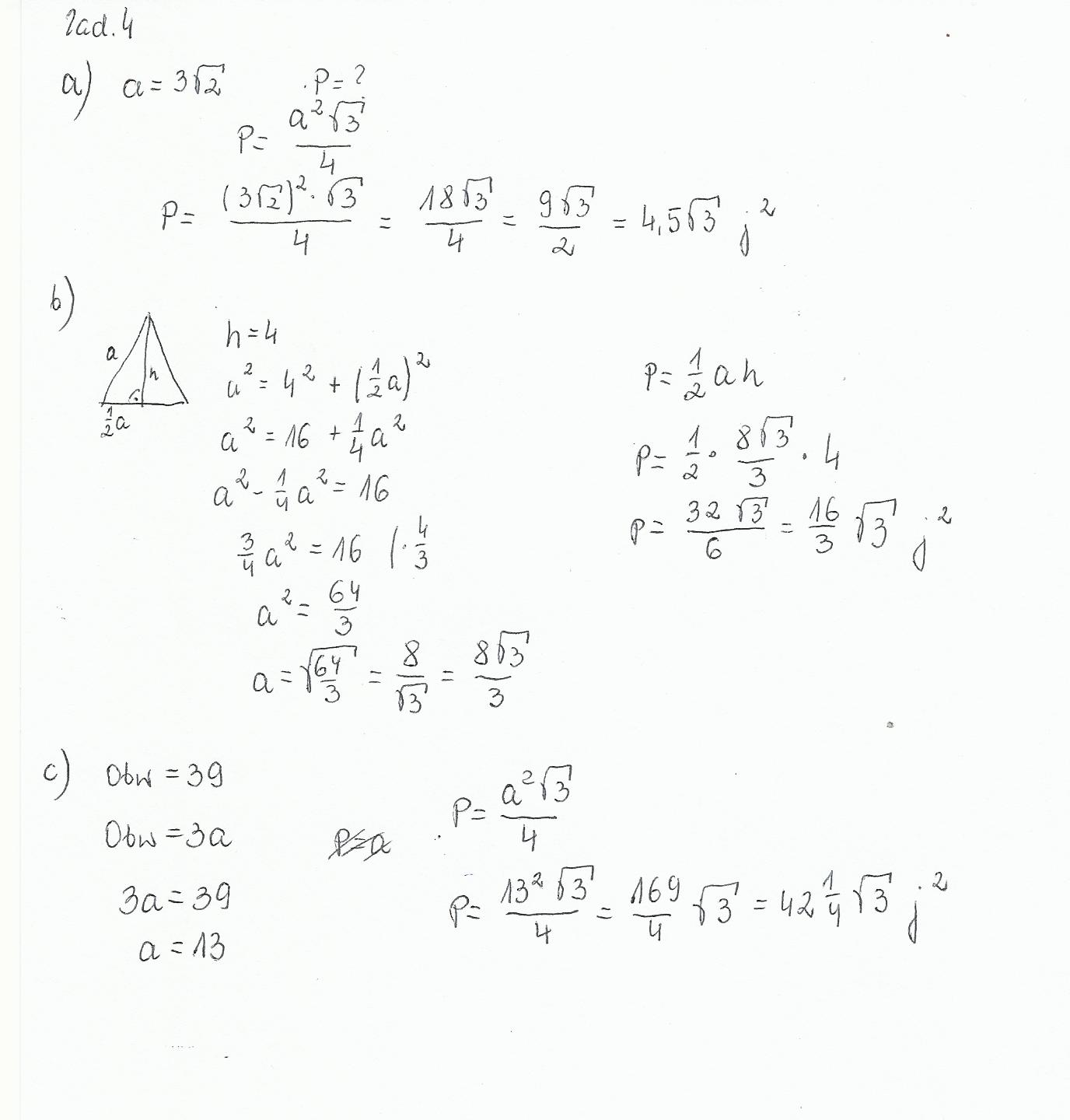 Zad.4 Oblicz pole trójkąta równobocznego gdy;