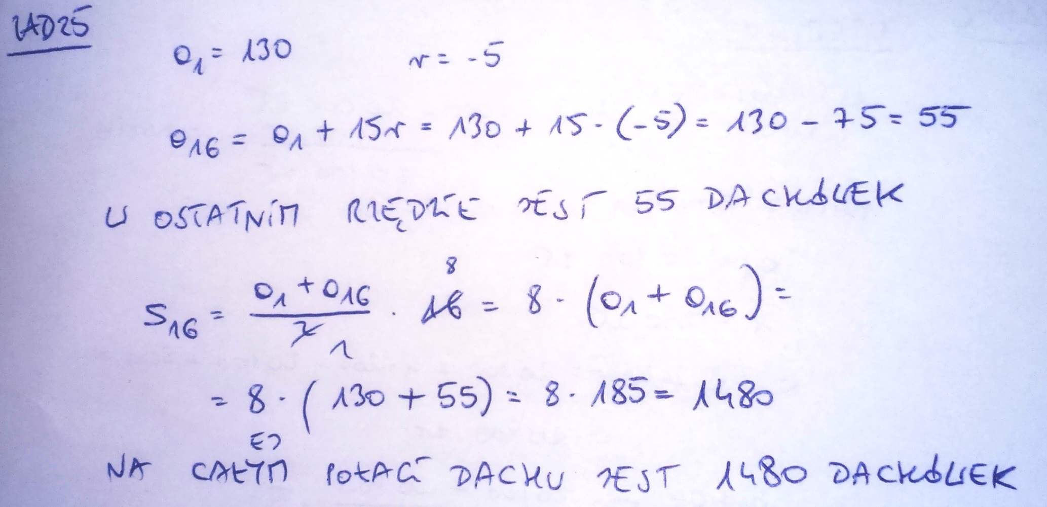 a_16 = 130 + (-5) * (16 - 1) = 55 dachówek