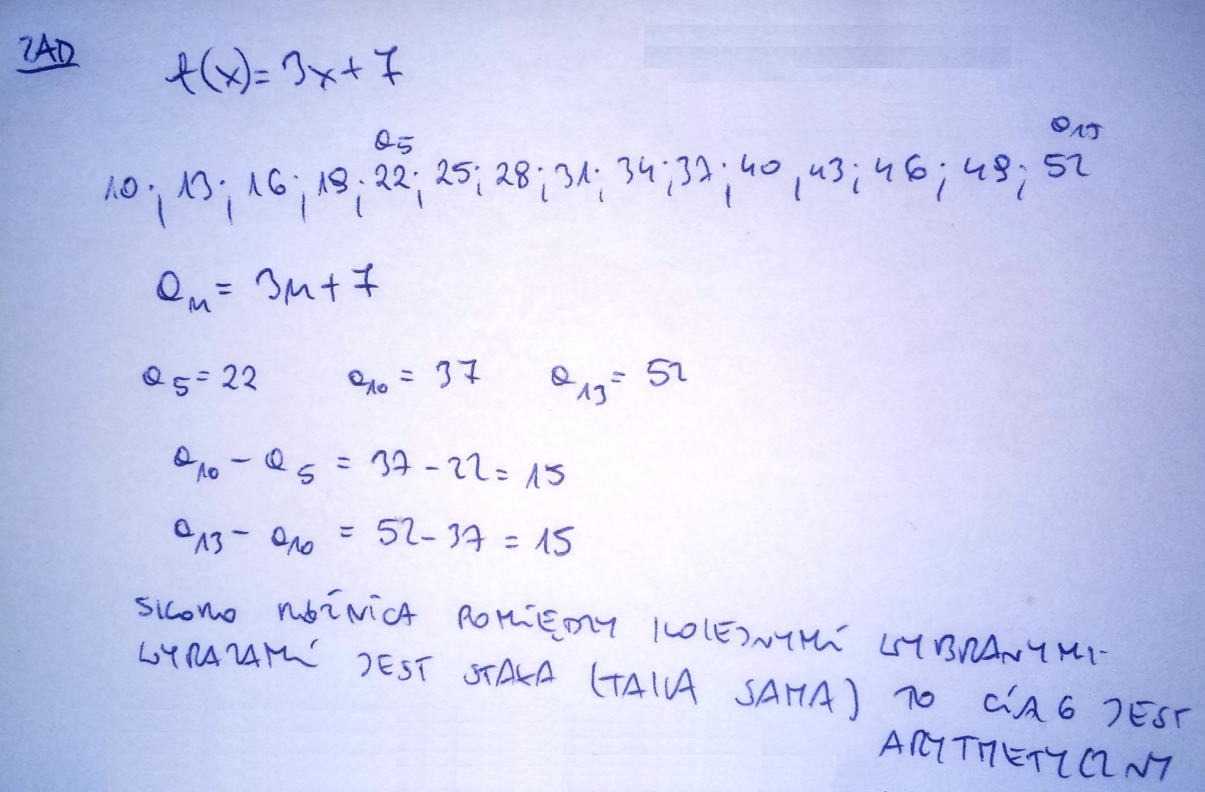 dana jest funkcja f(x) = 3x+7 zapisz wzór ogólny tego ciągu