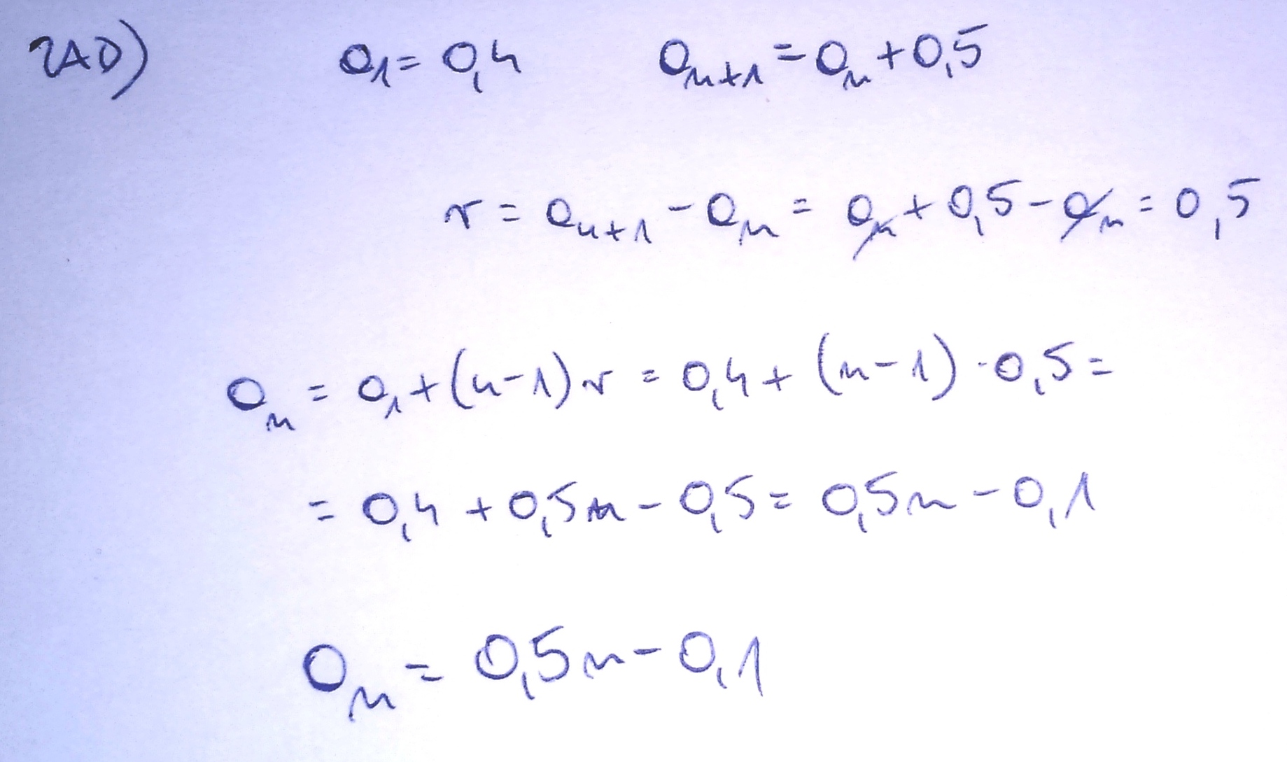 zapisz wzór ogólny ciągu arytmetycznego an w którym a1=0,4 i an+1 = an+0,5