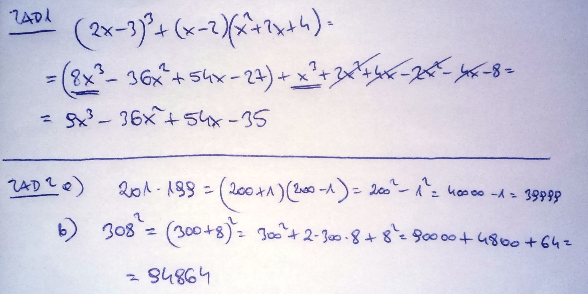 1.Dane wyrażenie doprowadź do prostszej postaci (2x-3)³+(x-2)(x ²+2x+4)=
