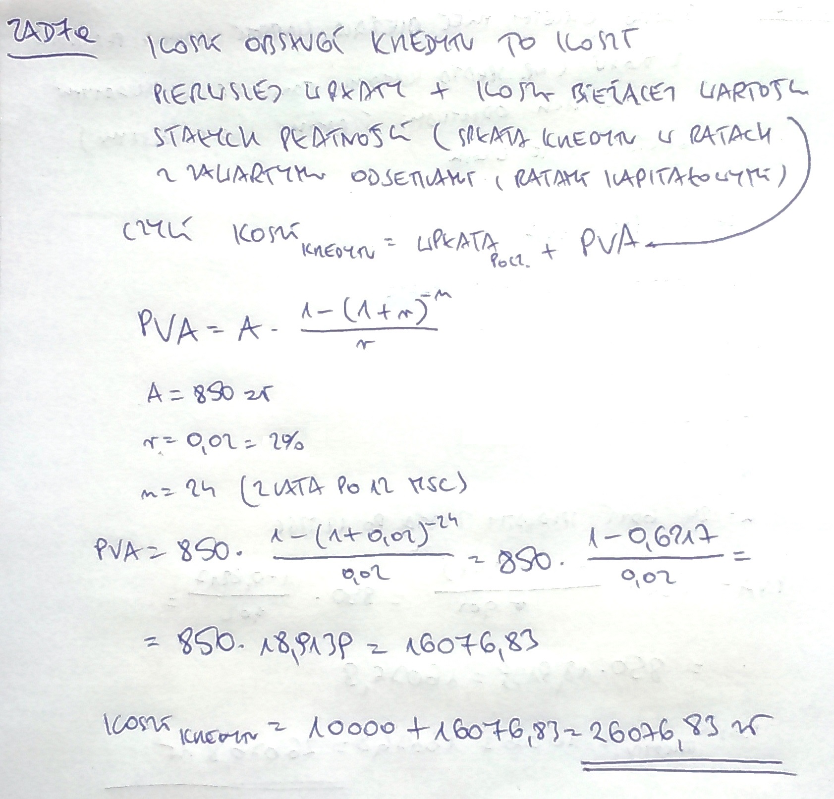 To zadania z tematu Wartość pieniądza w czasie i mieliśmy tylko coś o stopie procentowej, więcej nie umiem Ci powiedzieć, bo sama nie wiem. Jestem po pierwszych zajęciach, gdzie jeszcze tego nie ogarniam. Jeśli Ci to coś zobrazuje mam wyniki, ale potrzebuje jeszcze zapis tego jak do tego wyniku dojść: