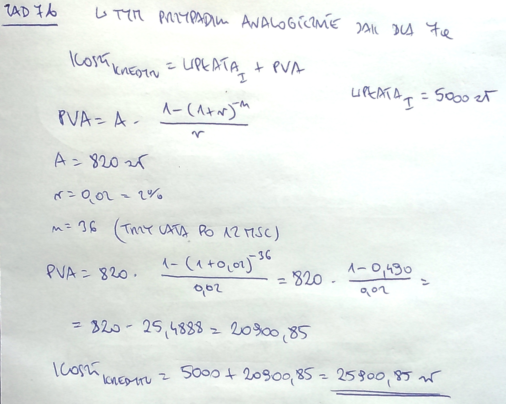 7. Odp a) Pv = 26 076,8 b) Pv = 25 900,85 c) Pv = 26 038,9