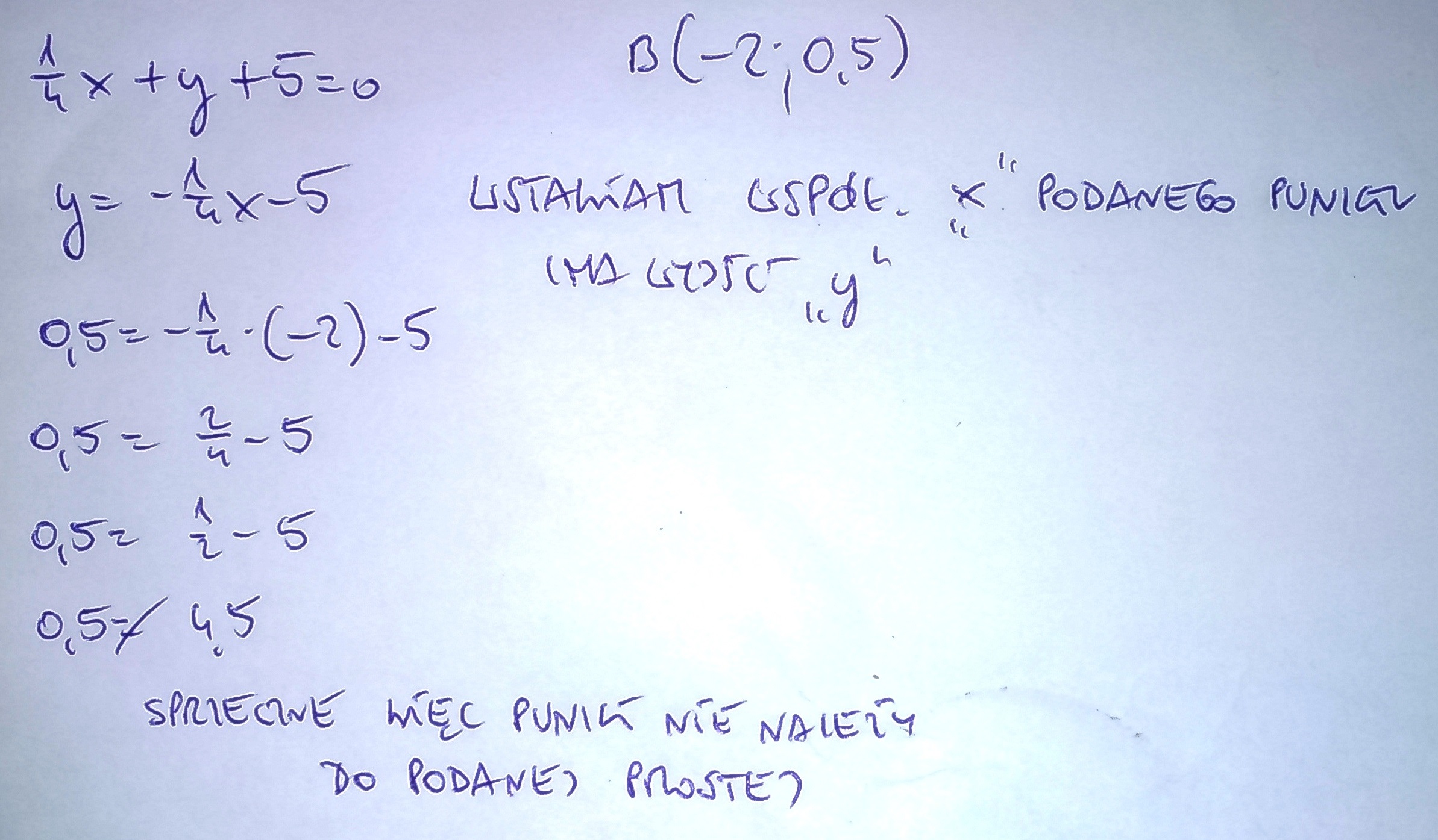 Sprawdź czy punkt B(-2 ; 0,5) należy do prostej opisanej równaniem :