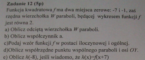Poza tym wiemy, że współrzędna x0 wierzchołka jest dla paraboli