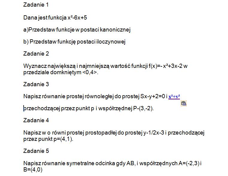 Pilnie potrzebuje zadań z matematyki. Poziom liceum - technikum.