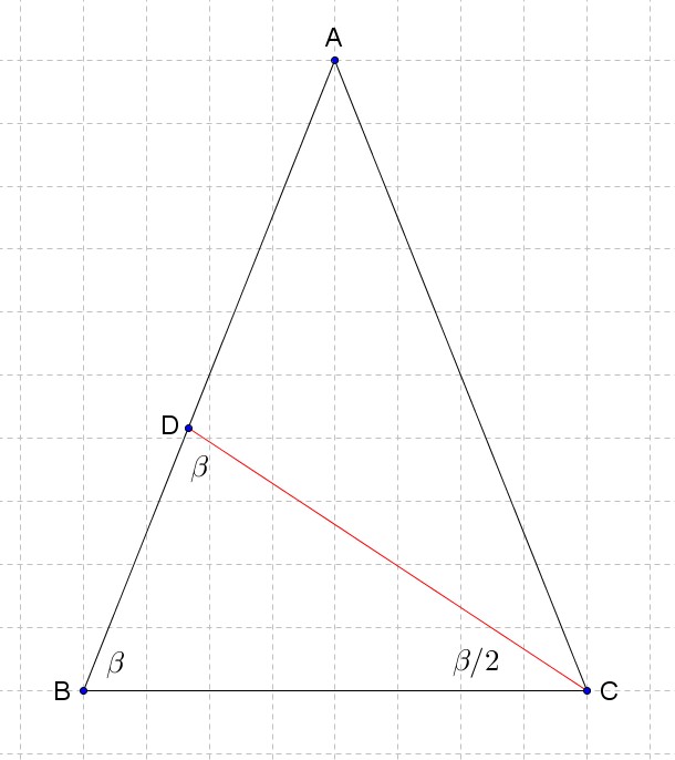 Ponieważ CD jest dwusieczną kąta BCA to kąt BCD = beta / 2.