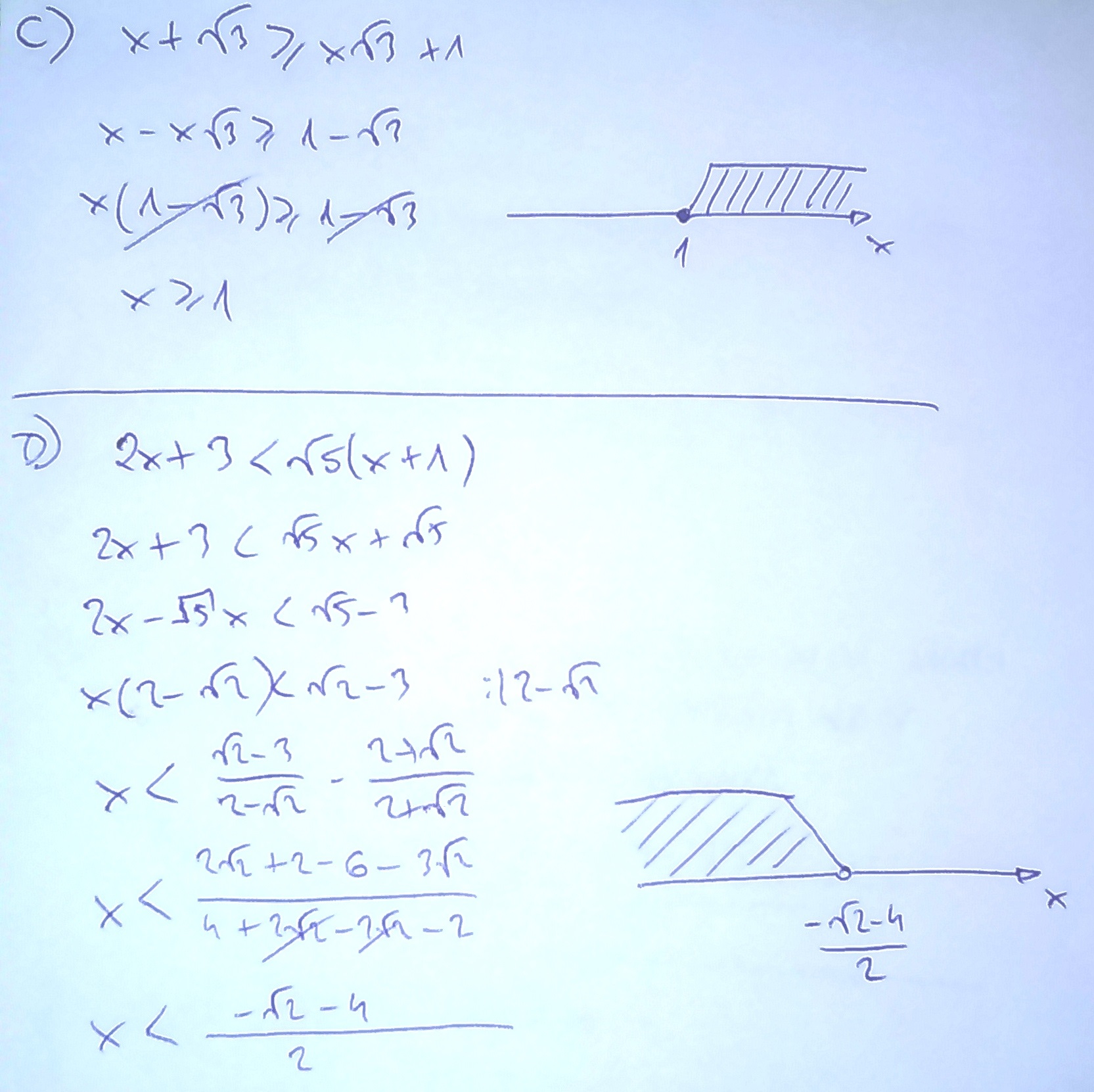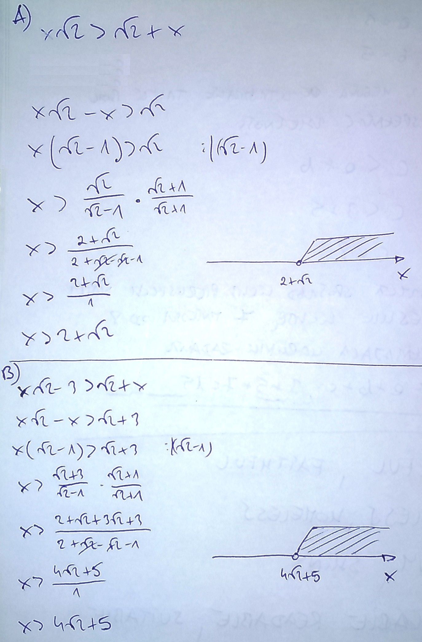 B) x pierwiastek z 2-3>pierwiastek z 2+x