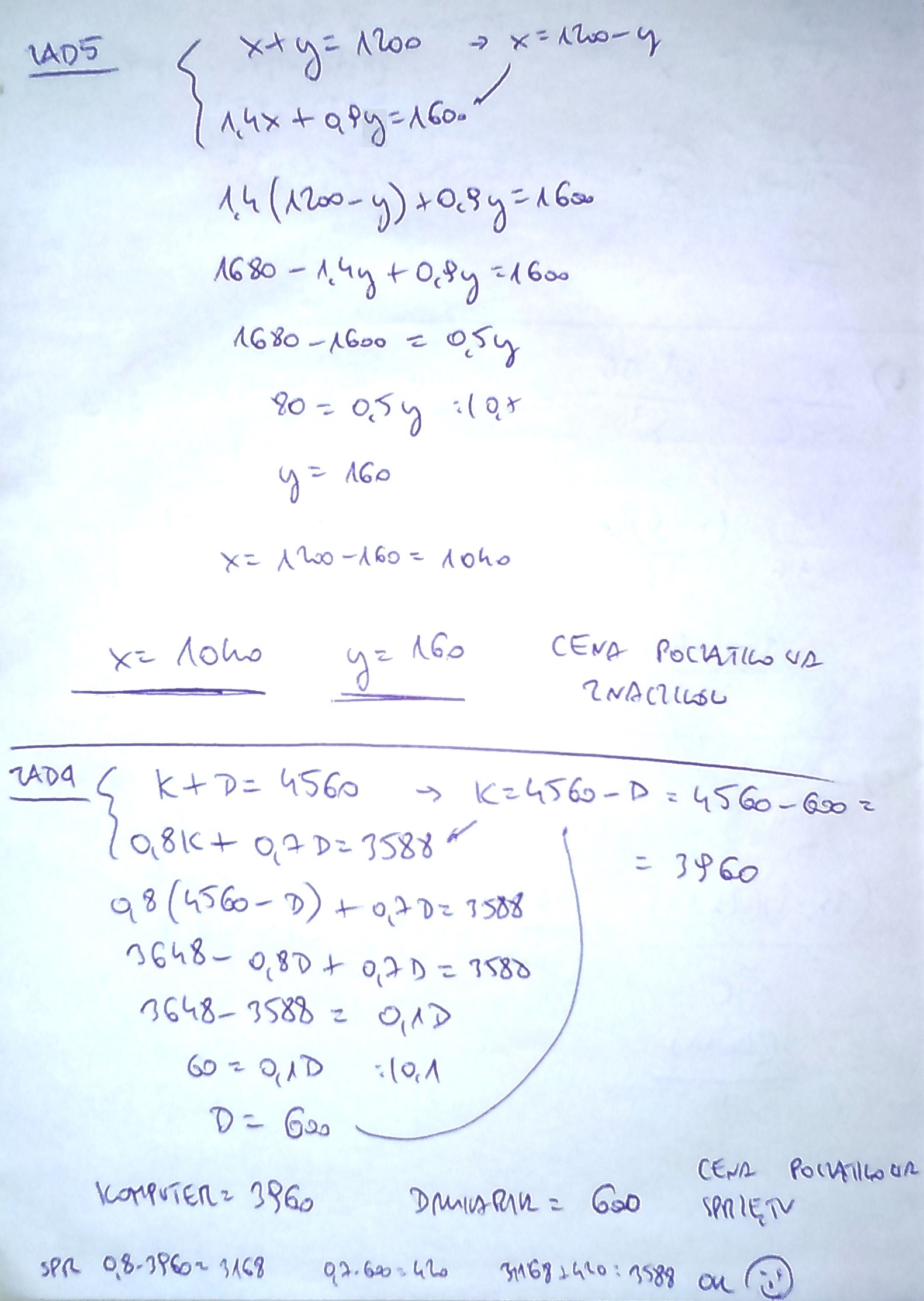 Układy równań cd. Z góry dziękuję