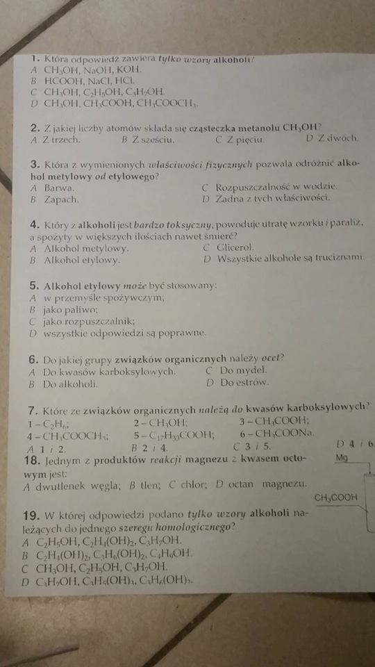 [ alkohole nie mają kwaśnego odczynu, a wodorotlenki tym bardziej ]