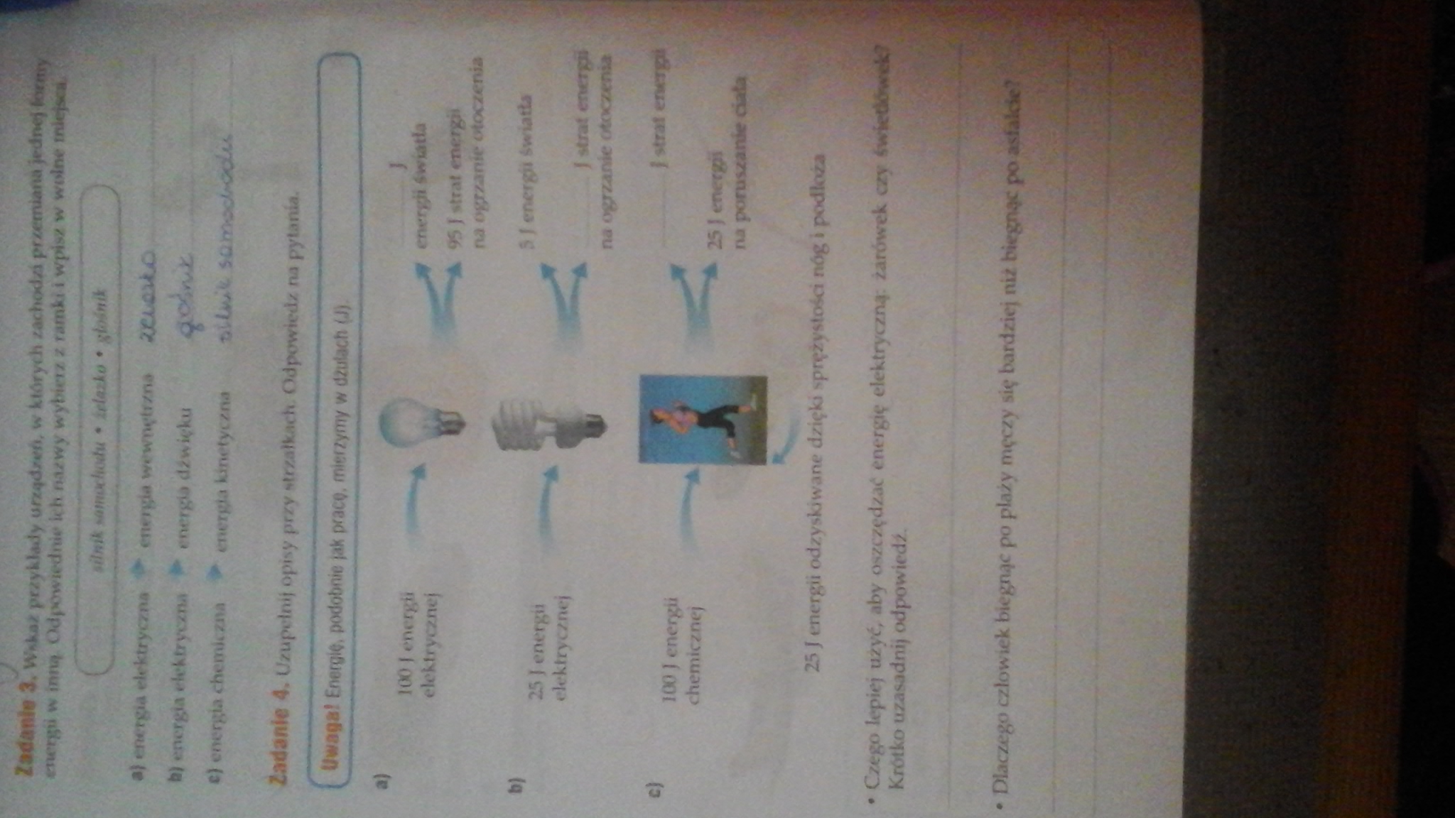 W żarówce energia światła to tylko 5 / 100 = 5% dostarczonej energii ( 95% strat).