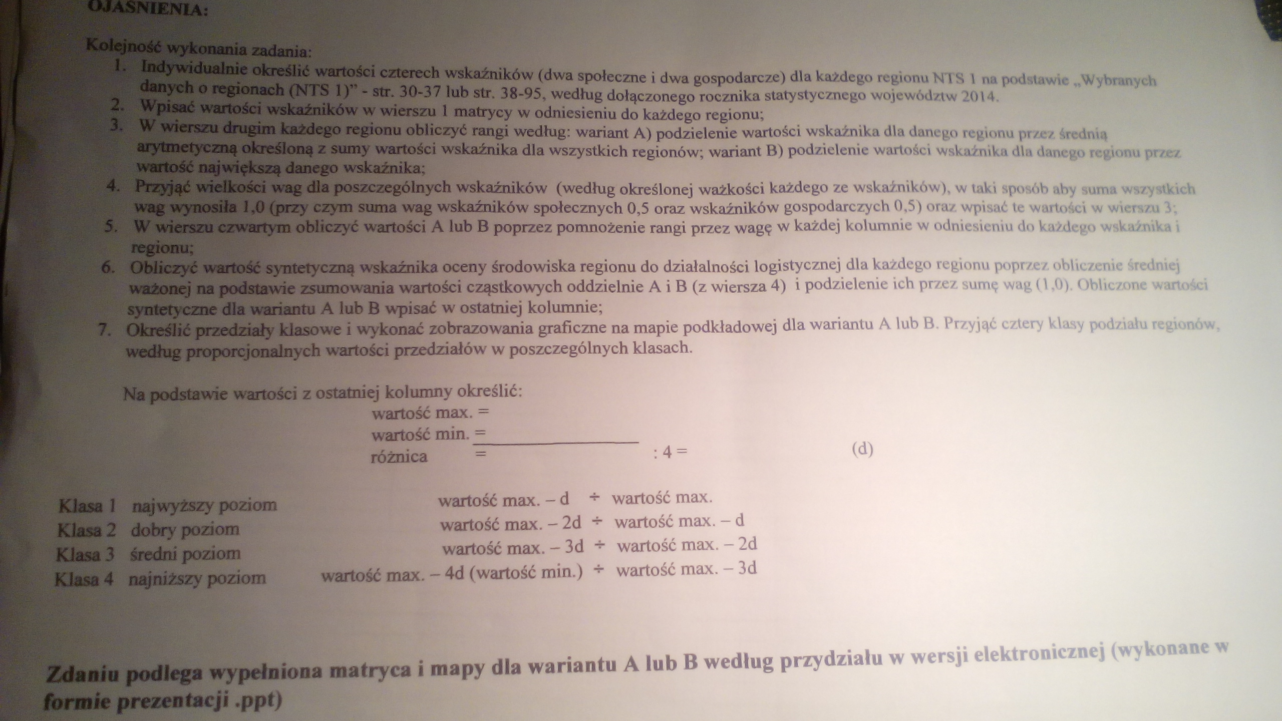 Od profesora dostaliśmy matryce, mapke i rocznik statystyczny, z którego potrzebne dane wypisałam w załączonej na zdjęciu kartce. :)