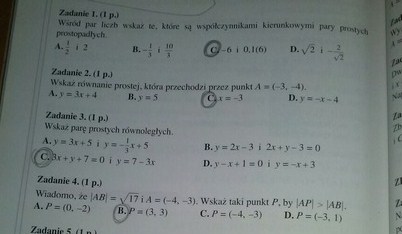 Wśród podanych par liczb szukamy więc takich, które mają jednakowe współczynniki przy "x". Jeśli równanie jest innej postaci niż y= a x + b to przekształcamy je do tej postaci.