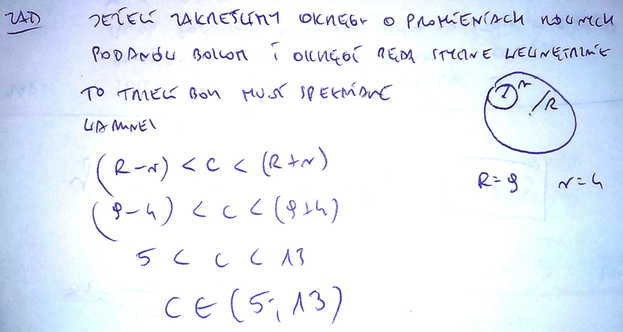 Dwa boki trójkąta mają długość 4 cm i 9cm. Trzeci bok tego trójkąta może miec długość ?