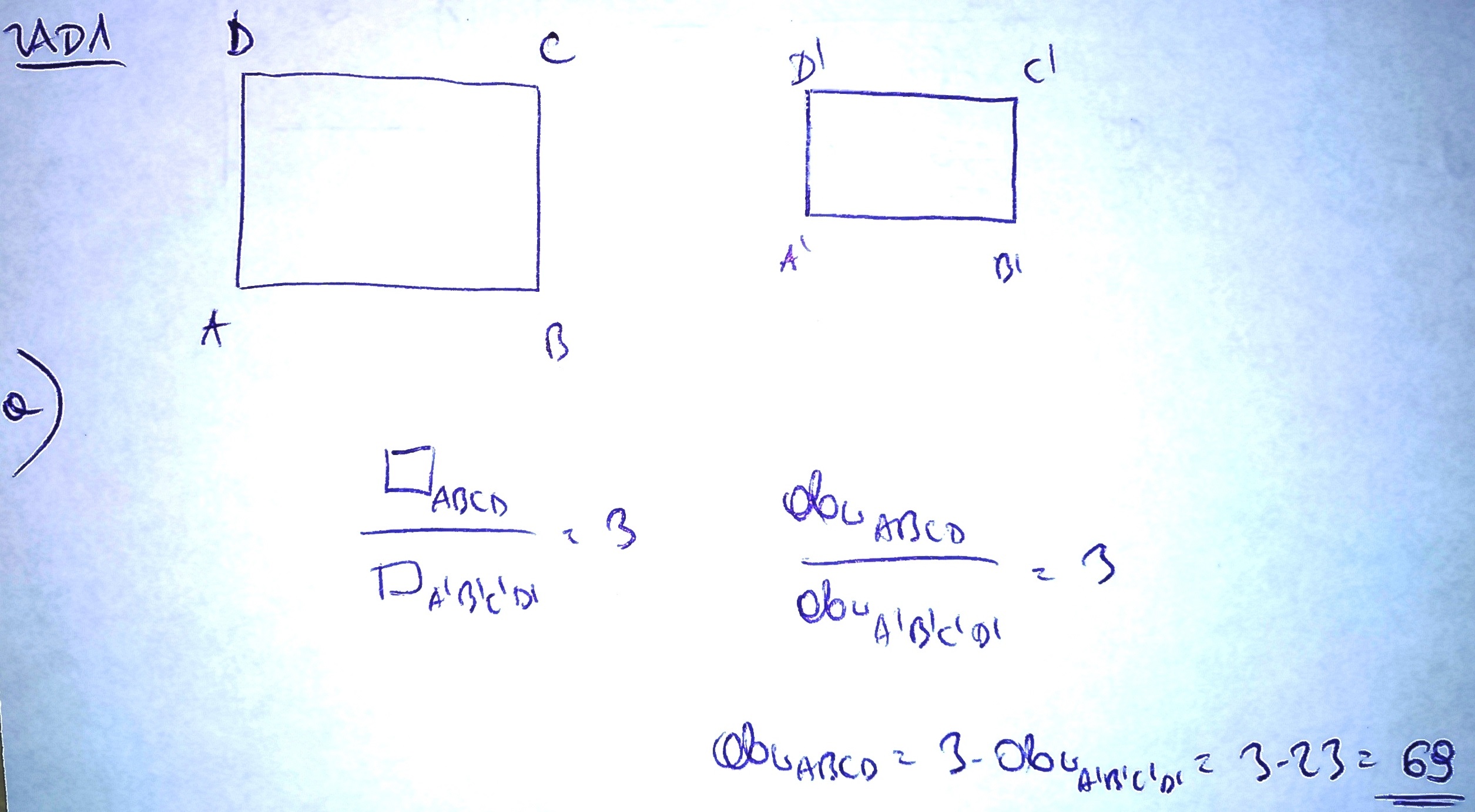 1. Czworokąt ABCD jest podobny do czworokąta A'B'C'D' w skali 3