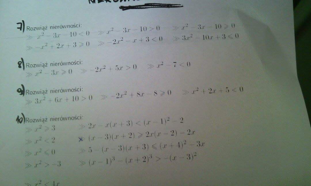 Nierówność z lewej strony na dole: Odpowiadające jej równanie to: