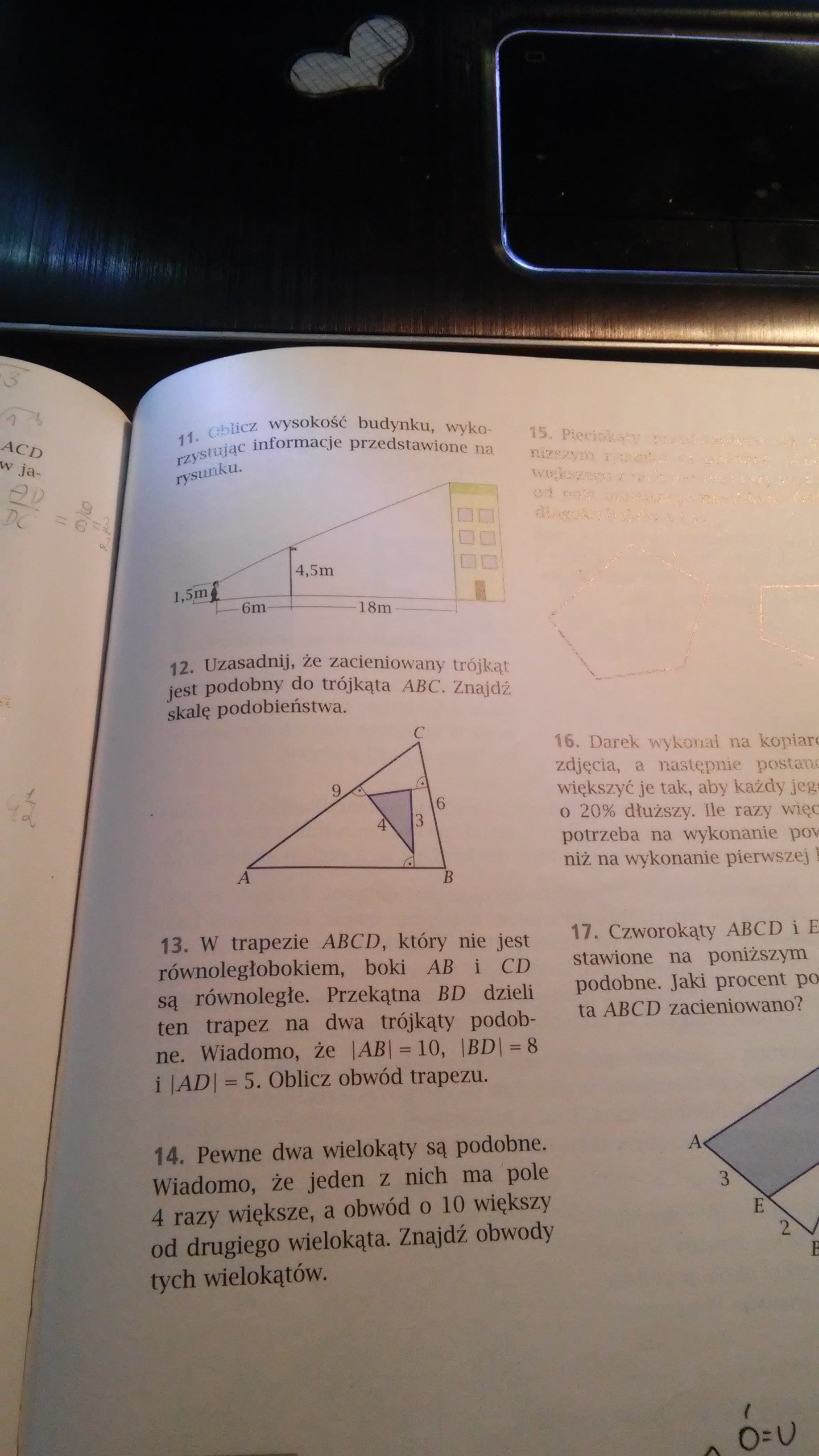 Zadania z powtórzenia 11 do 14. Proszę o rozwiązania. FIGURY PODOBNE.