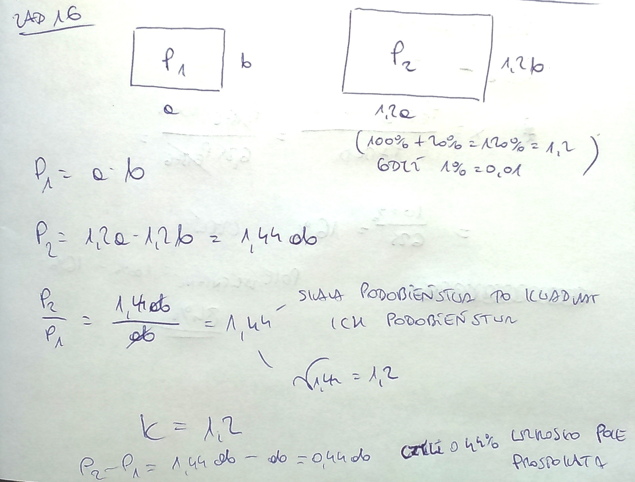 Pole większej odbitki jest więc k^2 = 1,44 razy większe od mniejszej