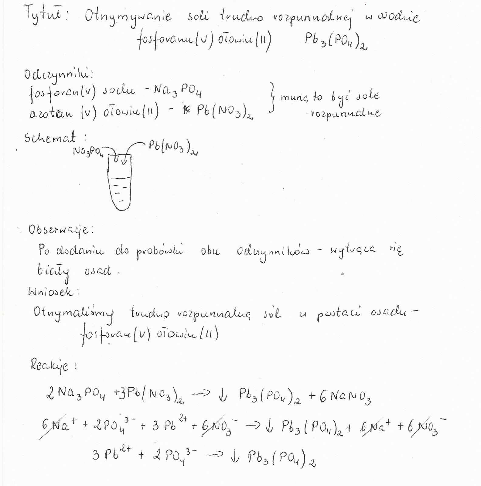 Zaprojektuj doświadczenie którego celem będzie otrzymanie soli trudno rozpuszczalnej w wodzie fosforan (V) ołowiu (II)
