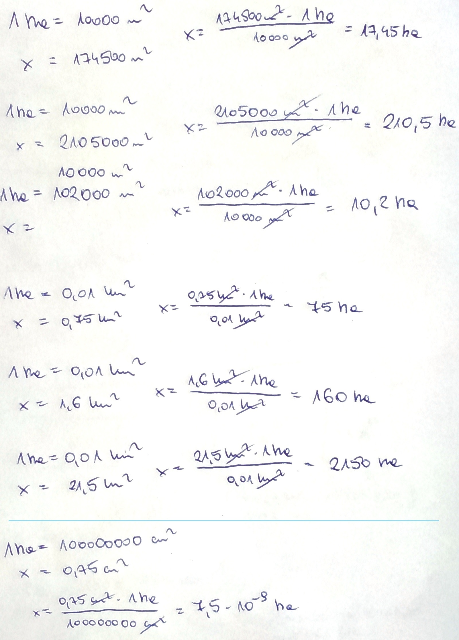 zamien na hektary 174500m2,2105000m2,30a,102000m2,0,75cm2,1,6km2,21,5km2