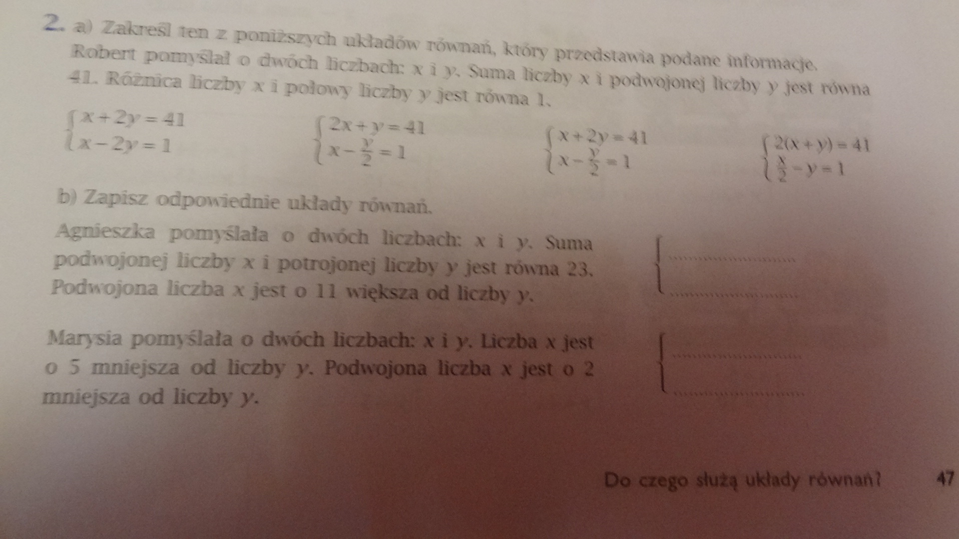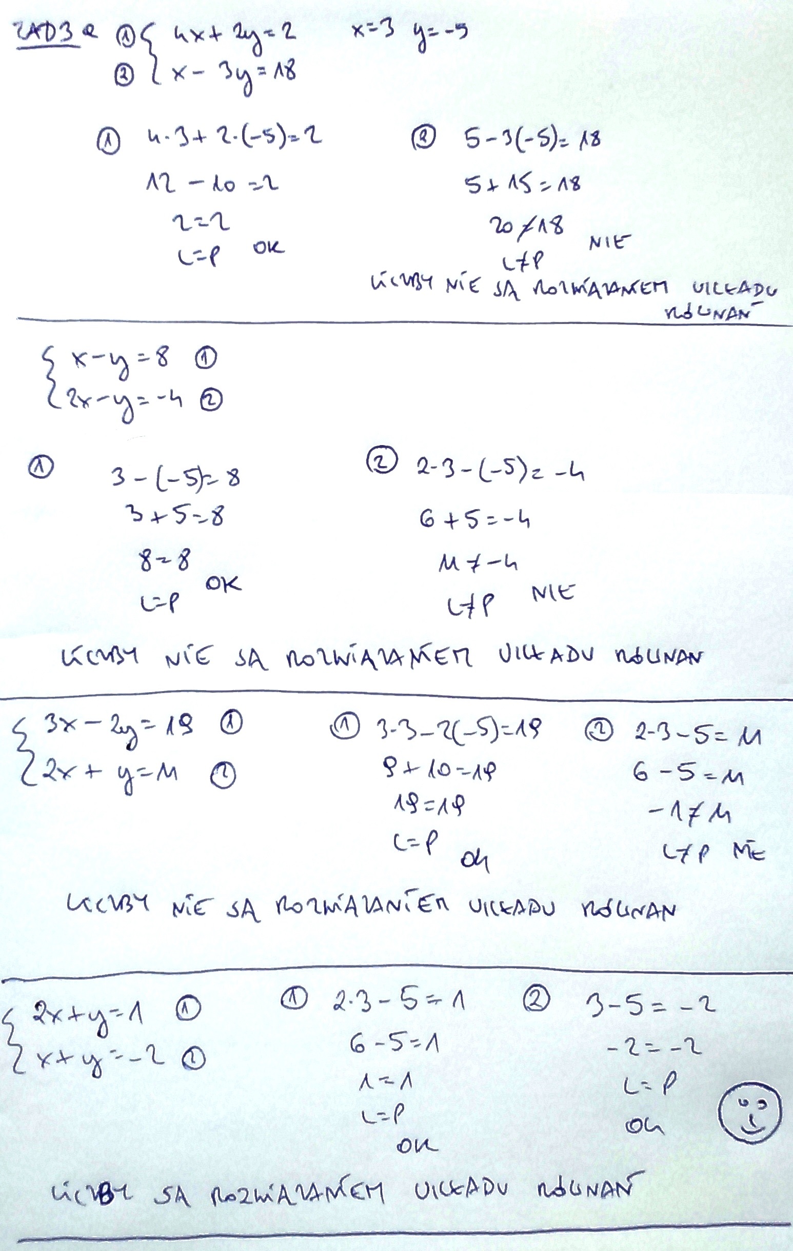 Dziękuję bardzo. Trochę miałam dobrze z tych zadań zrobionych. No,ale wygumkowałam te zadania sądząc,że wszystko co zrobię w matematyce jest źle. Dziękuję jeszcze raz bardzo bardzo bardzo