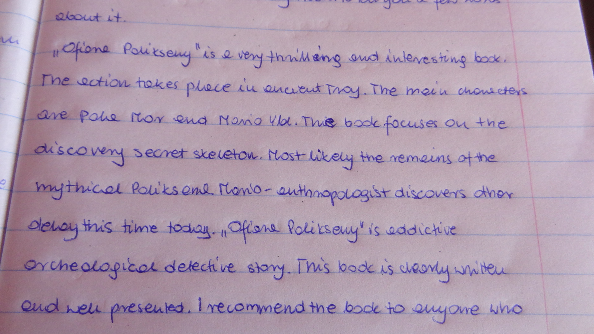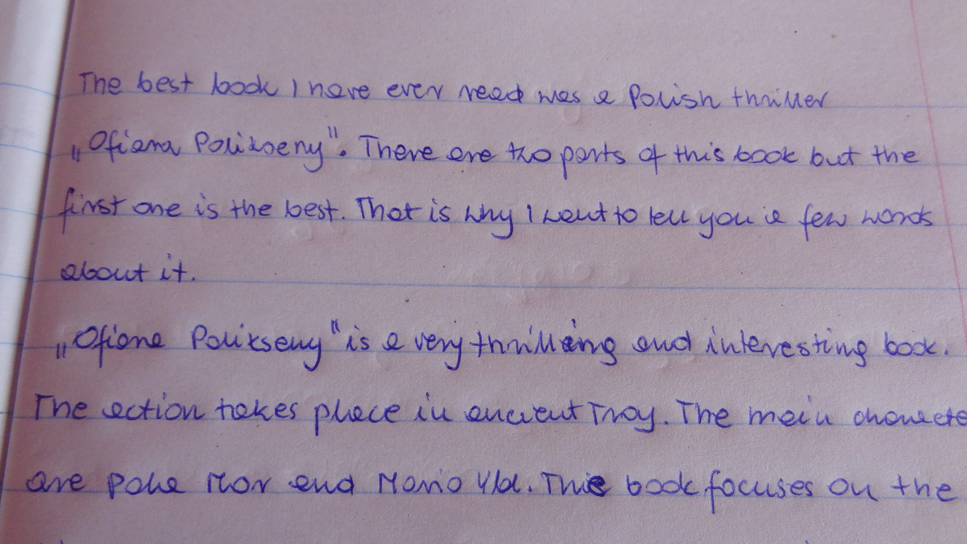 Chodziło mi o to czy w miarę gramatycznie napisałam dobrze. Tu jest po polsku ten tekst. Najlepszą książka jaką kiedykolwiek czytałam jest polski kryminał "Ofiara Polikseny".