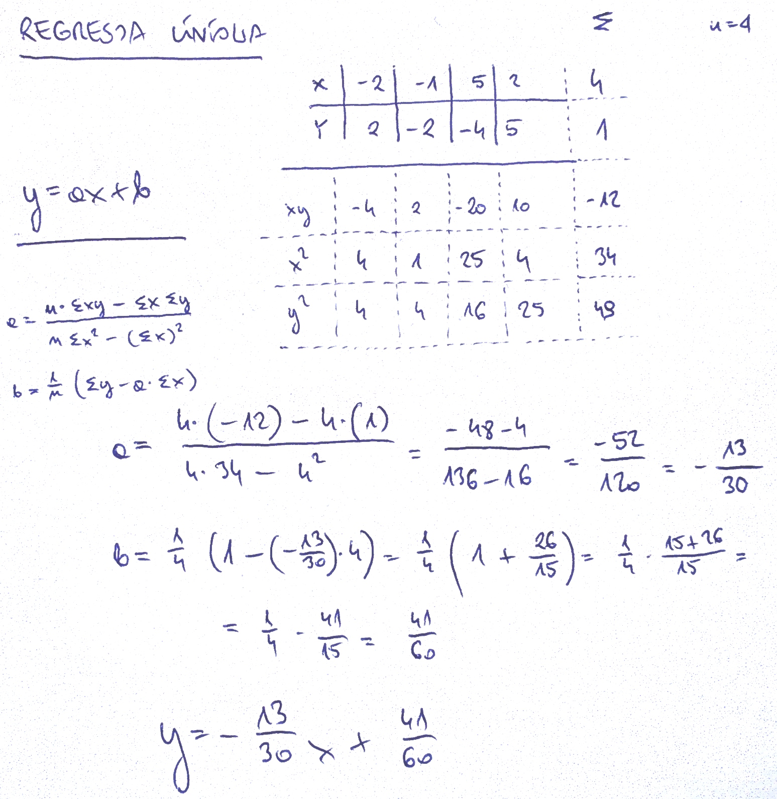 rozwiązanie na zdjęciu (metodą najmniejszych kwadratów)
