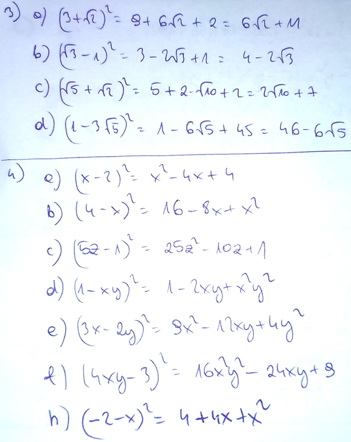 .Rozloz na czynniki wyraźne. a) a2+4ab+4b2. b)4x2+4x+1. c)9a2-12ay+4y2. D)4x2-20x+25. e)x2-8xy+16y2. f)4n2+12n+9. g) 25x2-40+16z2 h)36m2+12m+1 i)49x2+112xy+64y2. j)9x2-b2. k)16b2-9. 2.Stosując odpowiednie wzór skróconego mnożenia oblicz a)39 2. B)103 2 c)202 2. 3.Stosując wzory skróconego mnożenia oblicz a)(3+√2)2. B)+√3-1)2 c)(√5+√2)2 d)(1-3√5)2. 4.Stosując wzory skróconego mnożenia wykonaj potęgowanie a) (x-2)2. b) (4-x)2 c) (5z-1)2 d) (1-xy)2. E)(3x-2y)2 f)(4xy-3)2 h)(-2-x)2