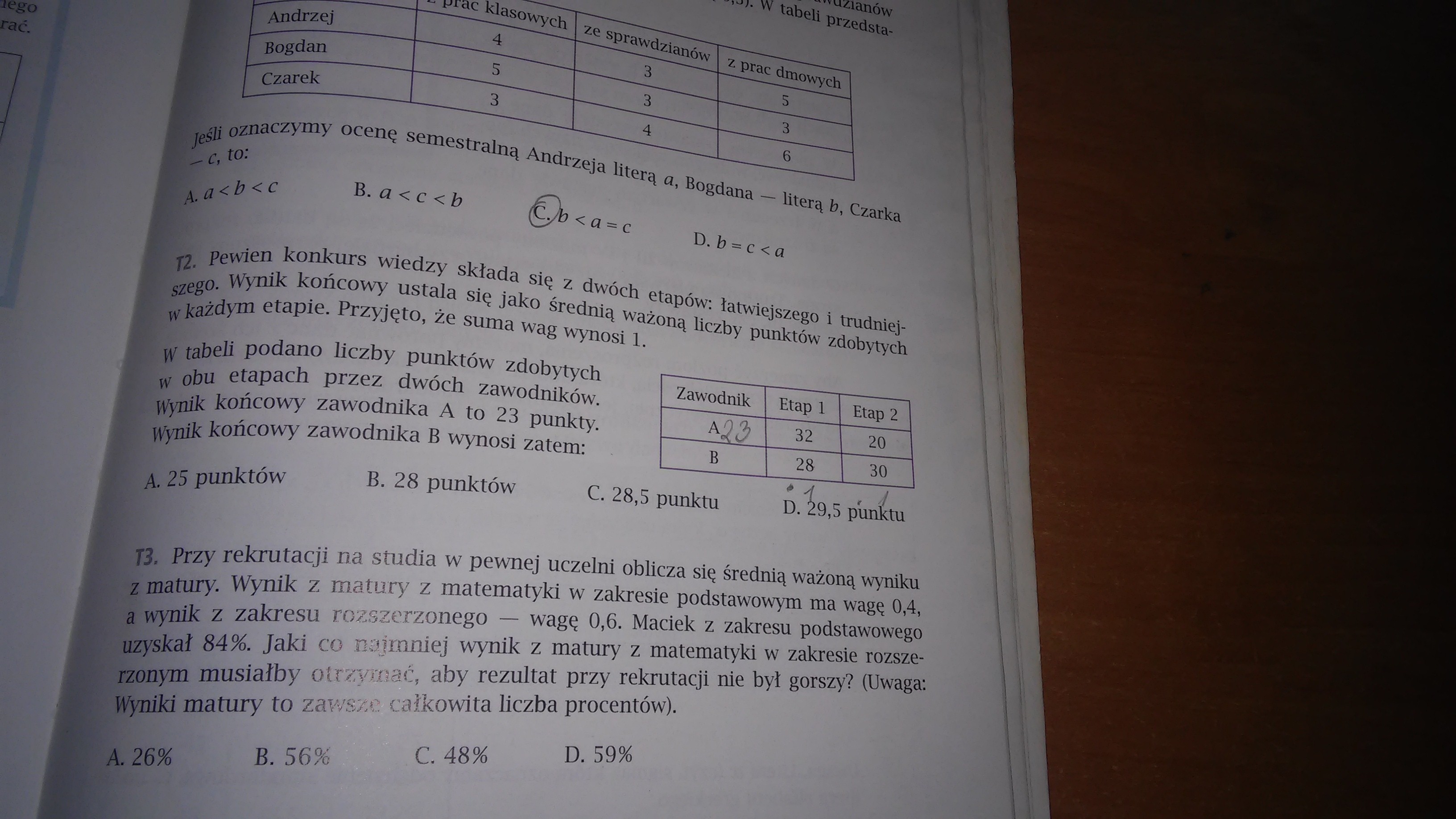 a drugi etap był trudniejszy (z większą wagą) to NIE może mieć wyniku < 29.