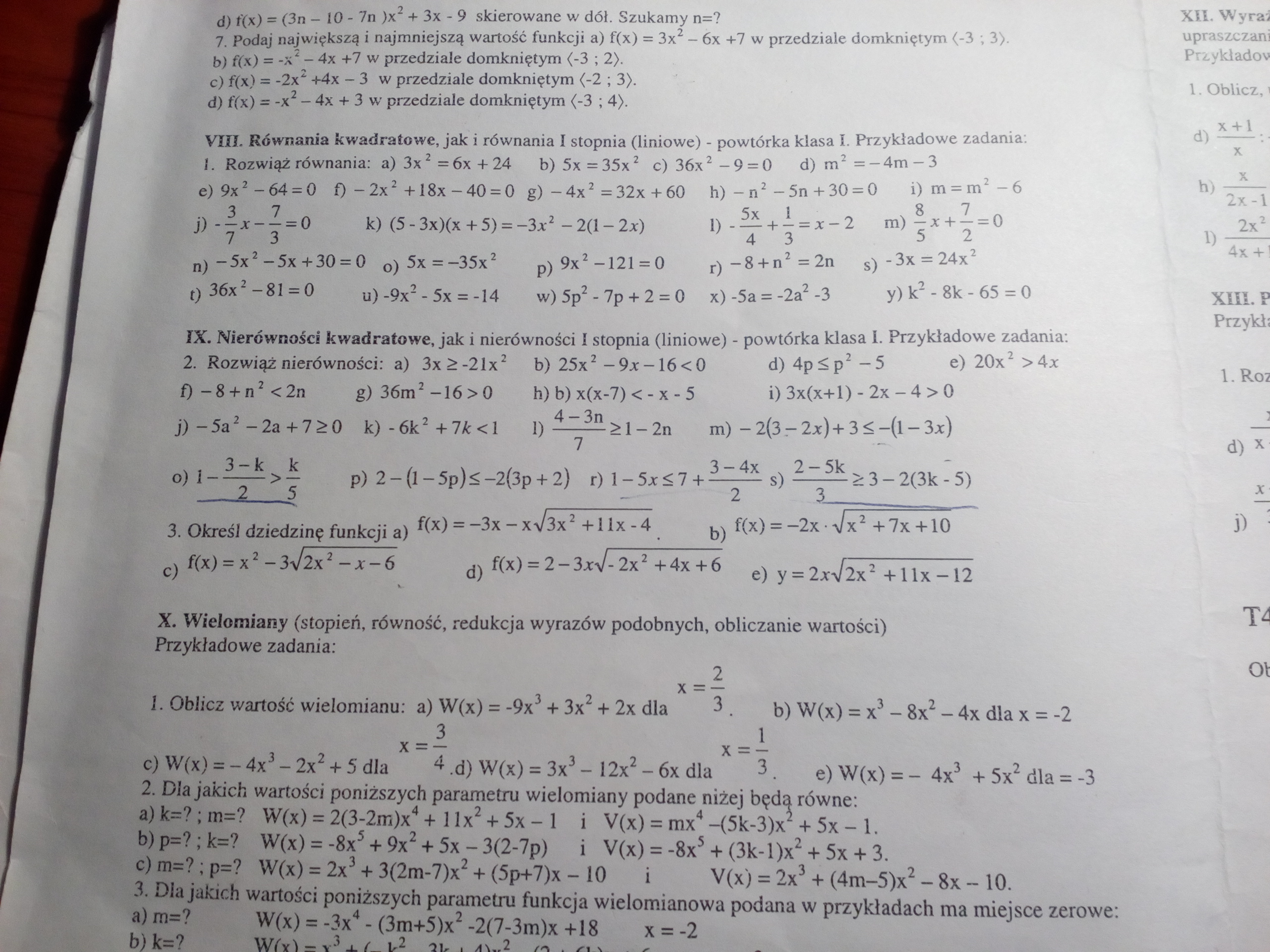 Zadania nierówności kwadratowe ( blagam bardzo ważne dla mnie! )