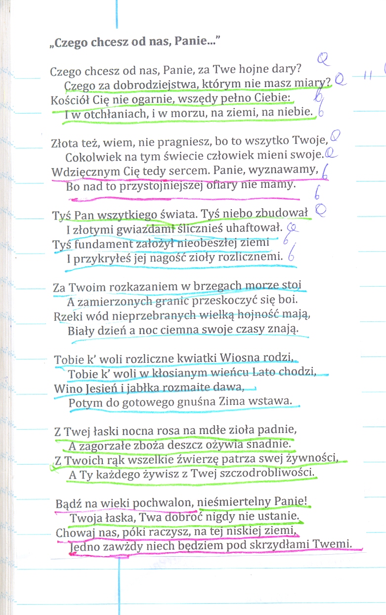 Uzasadnij że pieśn Kochanowskiego " czego chcesz od nas panie" ma charakter