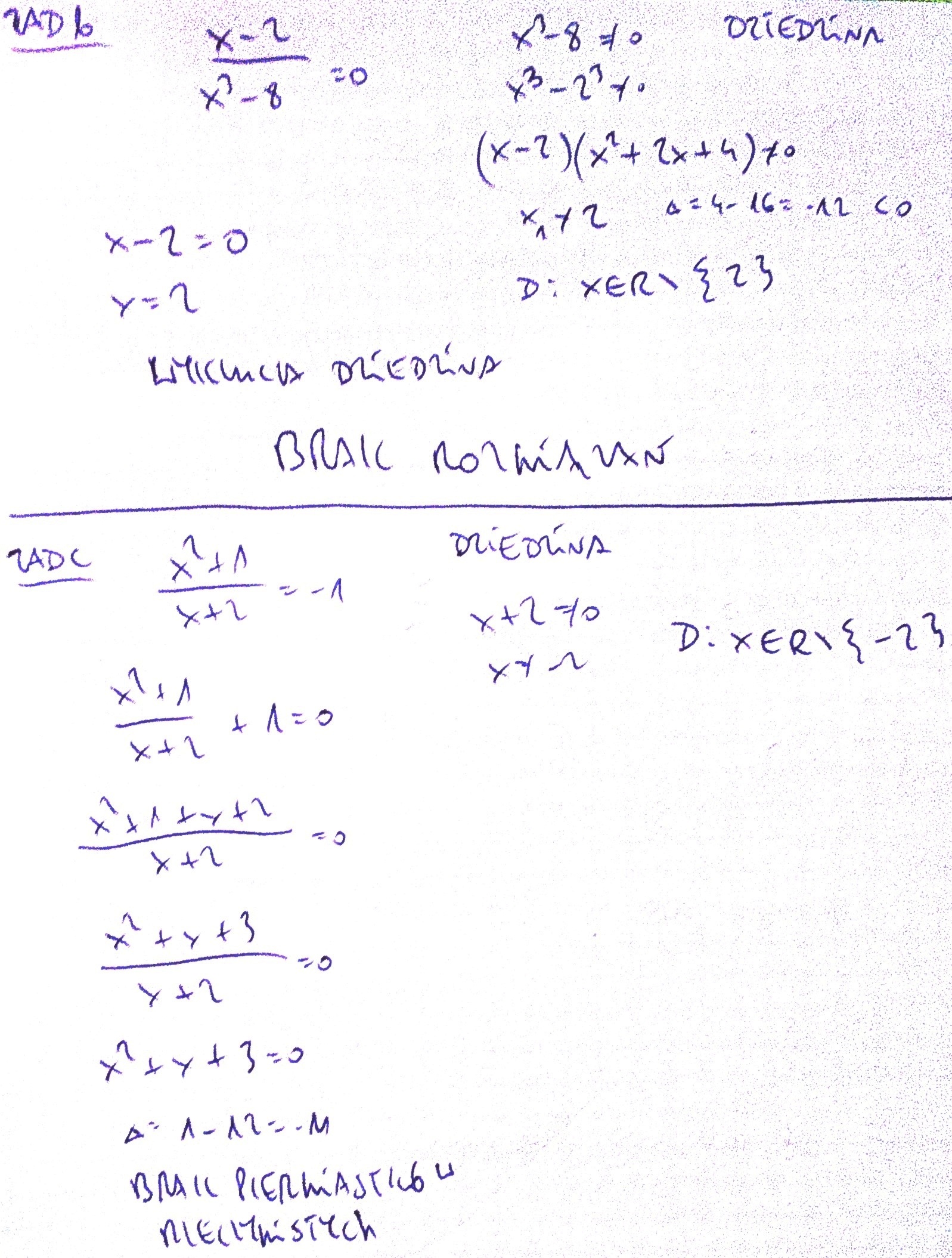W pierwszym zadaniu (b) (x - 2) / (x^3 - 8) = 0