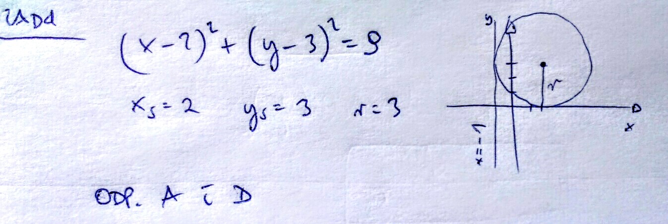Okrąg o równaniu (x-2)² + ( y-3)² = 9 jest styczny do :