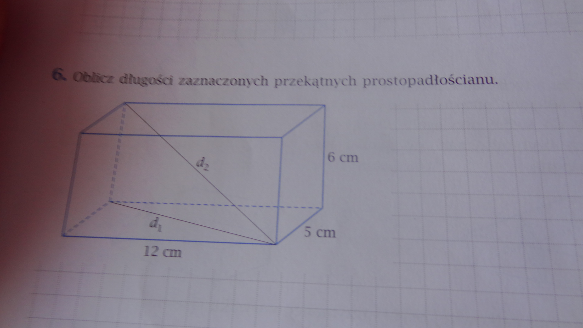 Oblicz długości zaznaczonych przekątnych prostopadłościanu.