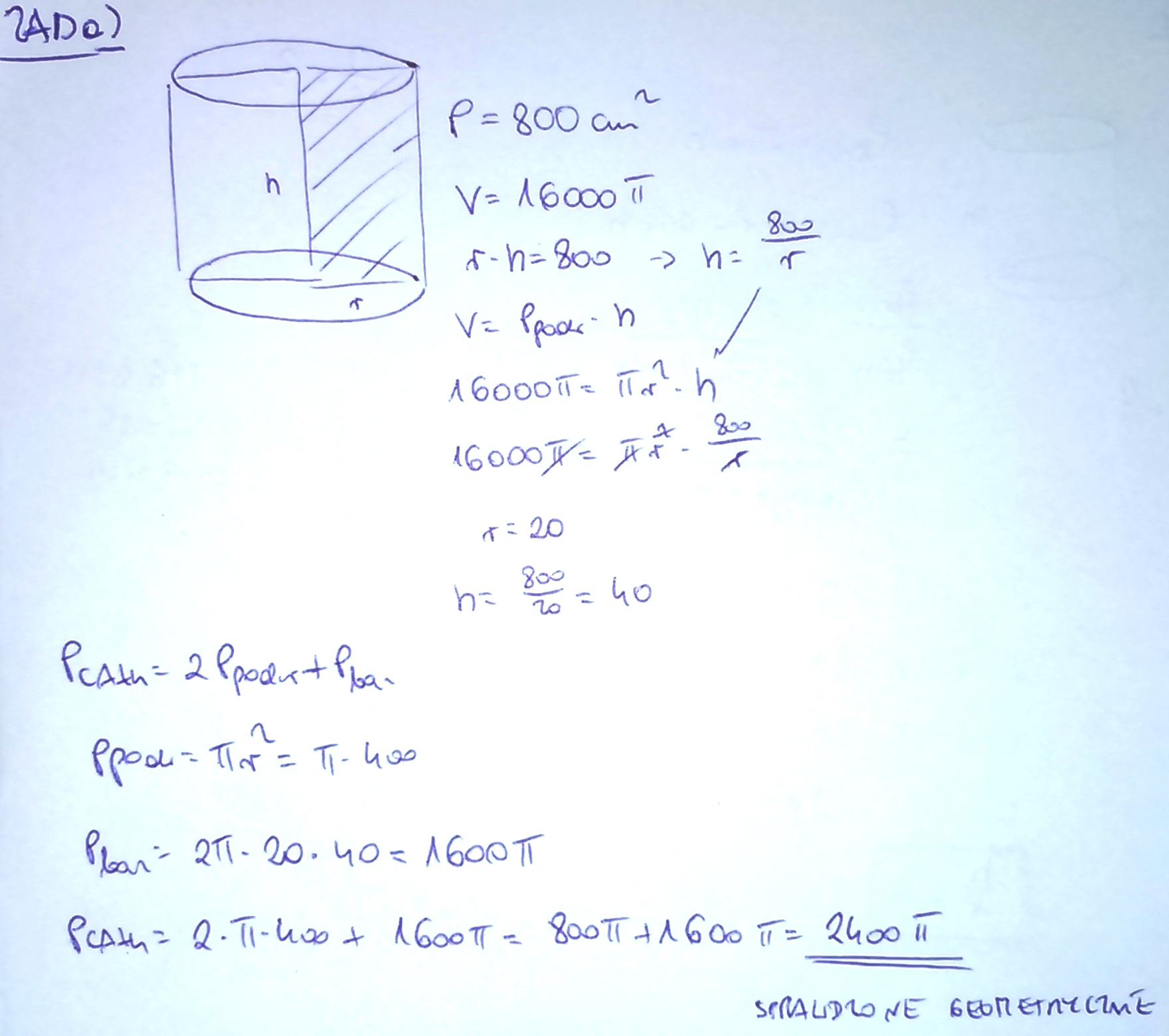 Rozwiąż mi proszę te przykłady. a) Prostokąt o polu równym 800cm2 obraca się dookoła jednego z boków.Objętość otrzymanej bryły jest równa 16 000Pi cm3.Oblicz pole powierzchni całkowitej bryły.