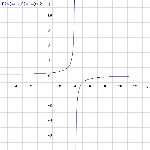 f(x) = -1/x-4 +2 bez kreski