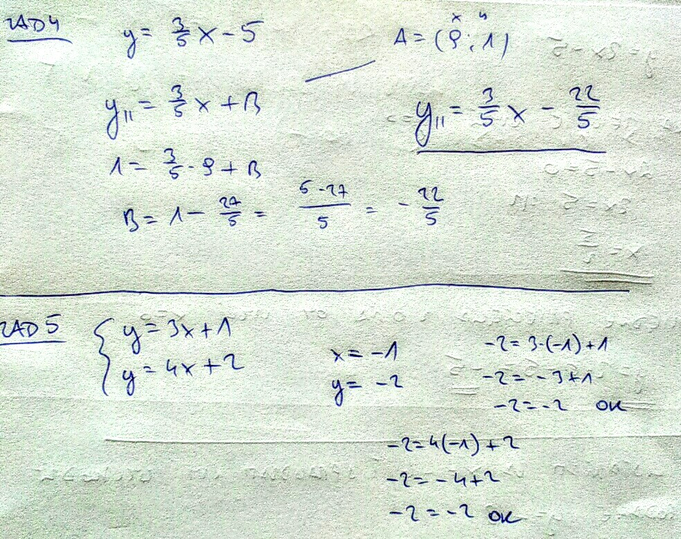 Zad 4. Napisz równanie prostej równoległej do prostej o równaniu y = 3/5x - 5 przechodzące przez punkt A = ( 9,1)