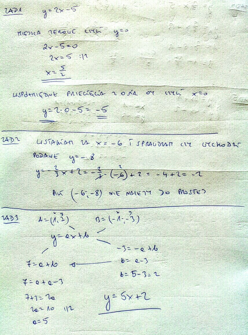 Zad 3. Napisz równanie prostej przechodzącej przez punkty A= (1,7) , B = (-1,-3)