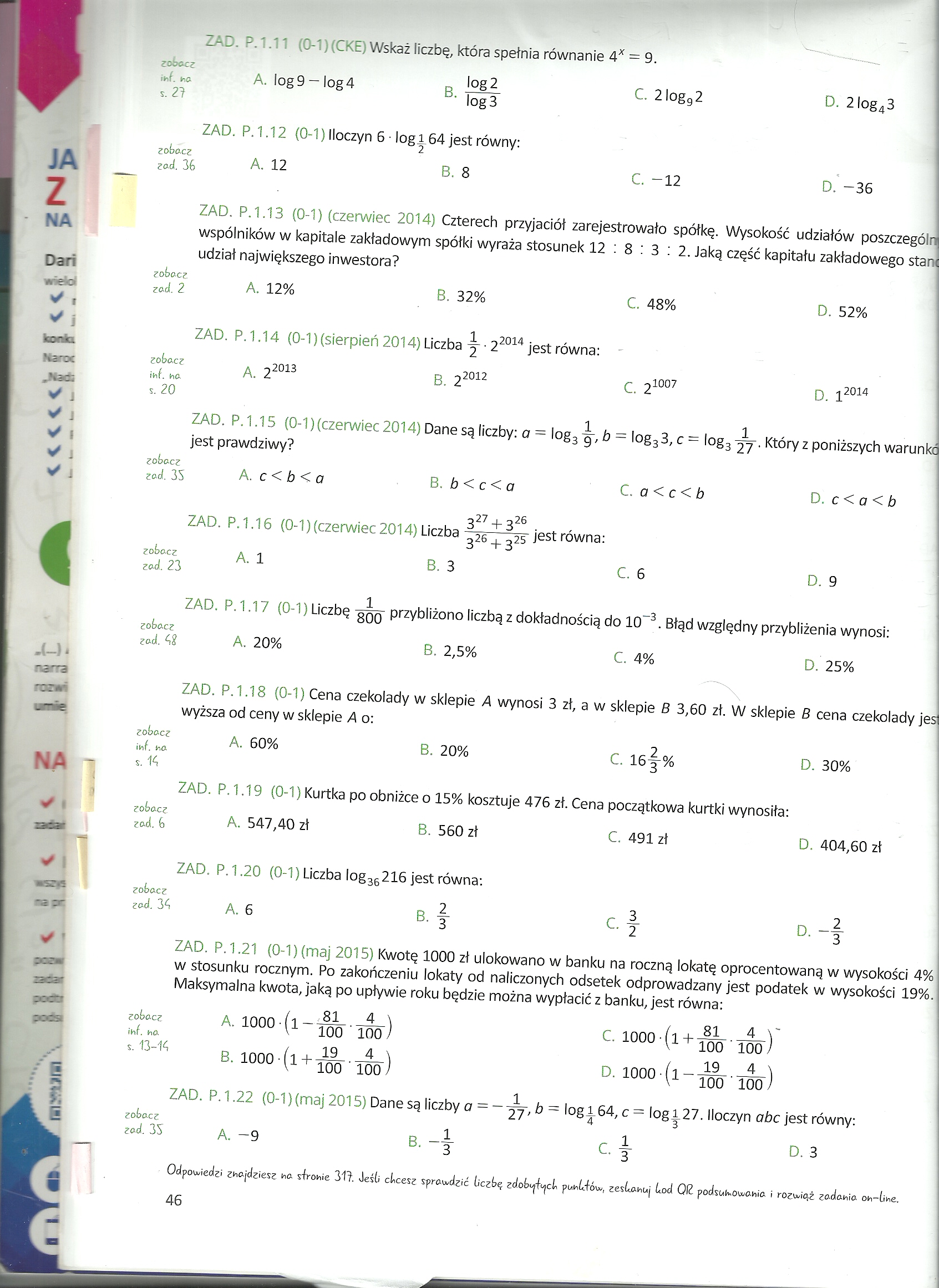 najbardziej zależy mi na tych zadaniach które mają w nawiasie napisane CKE lub MAJ 2015, sierpień 2015, 2014