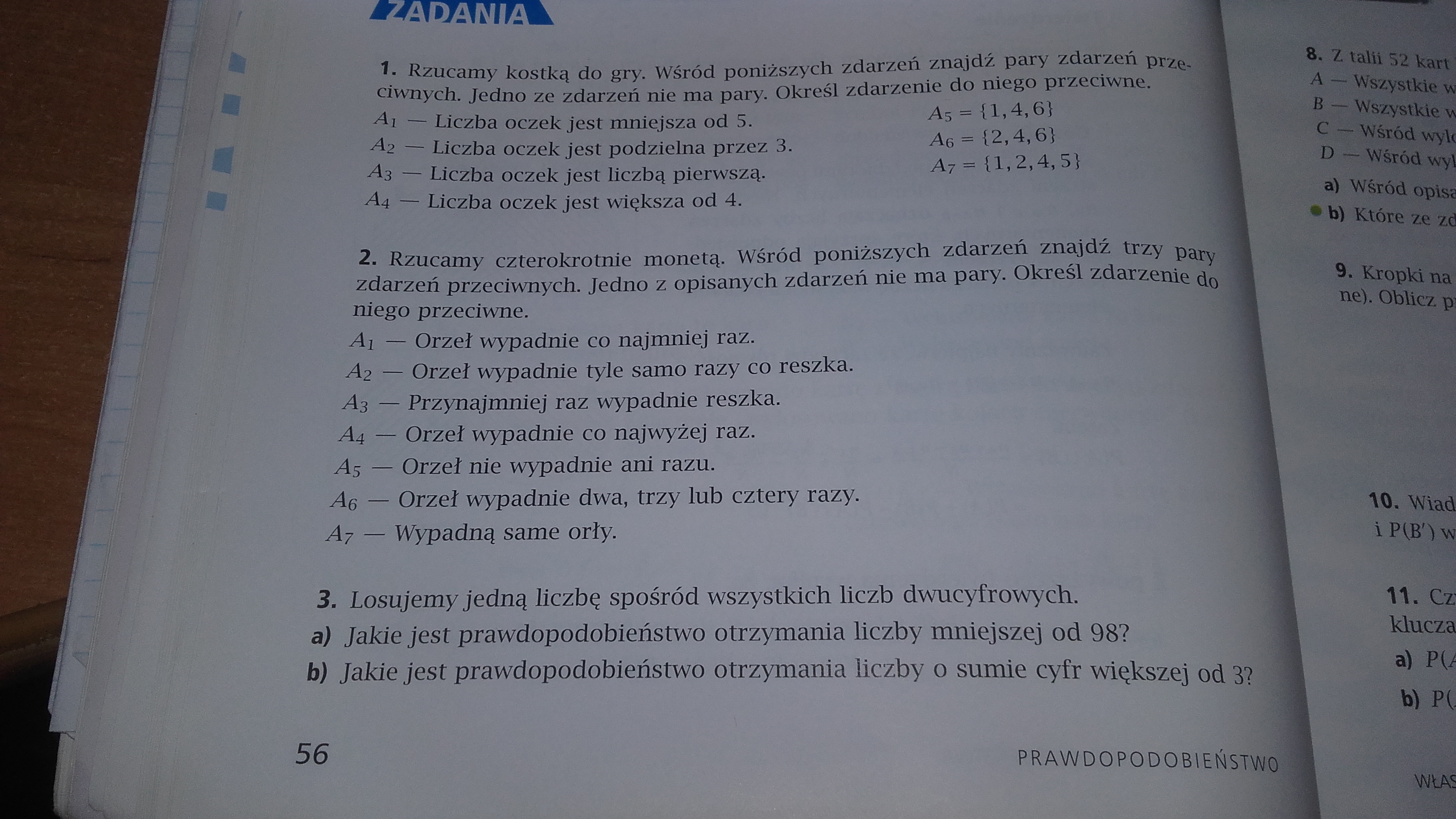 Zdarzenie A6 (liczba oczek jest parzysta) nie ma podanego przeciwnego.