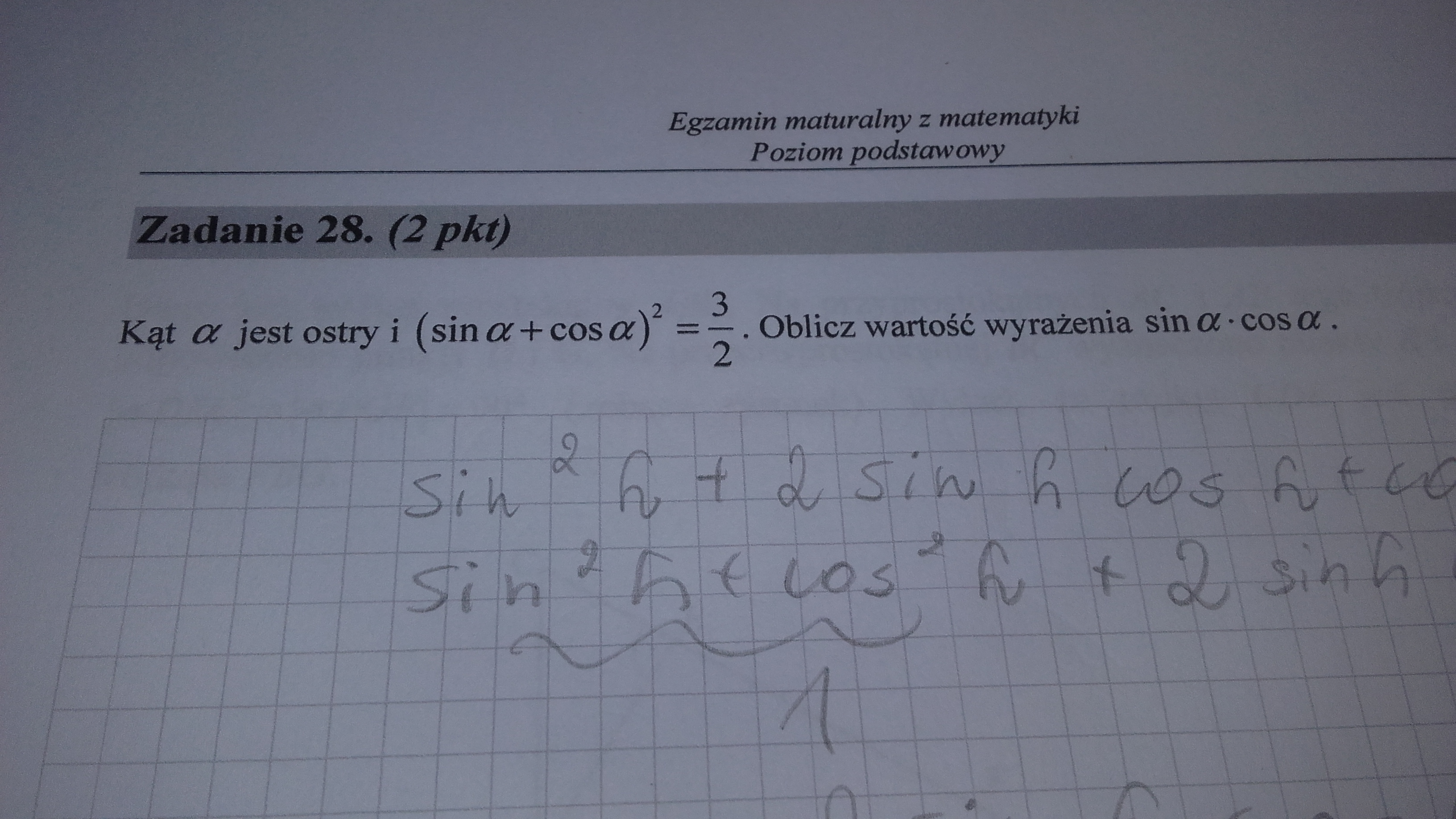 zadanie z matury 2016, proszę wytłumaczyć bo trygonometrii nie umiem :(