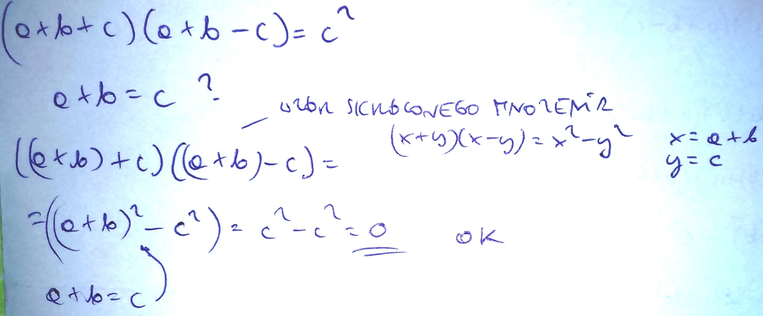 (a+b+c)(a+b−c) = c2