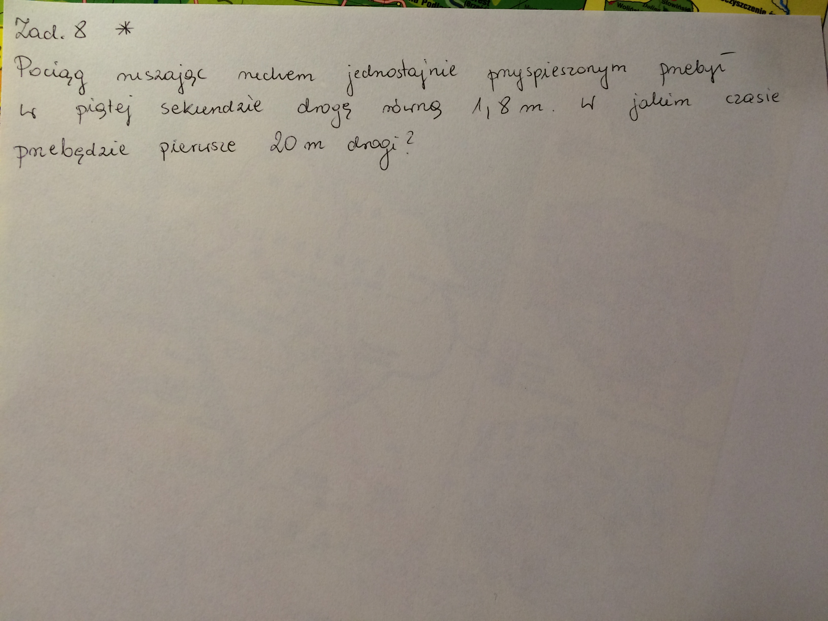1,8 = (1/2) a (25 - 16) ; stąd po kilku obliczeniach: a = 0,4