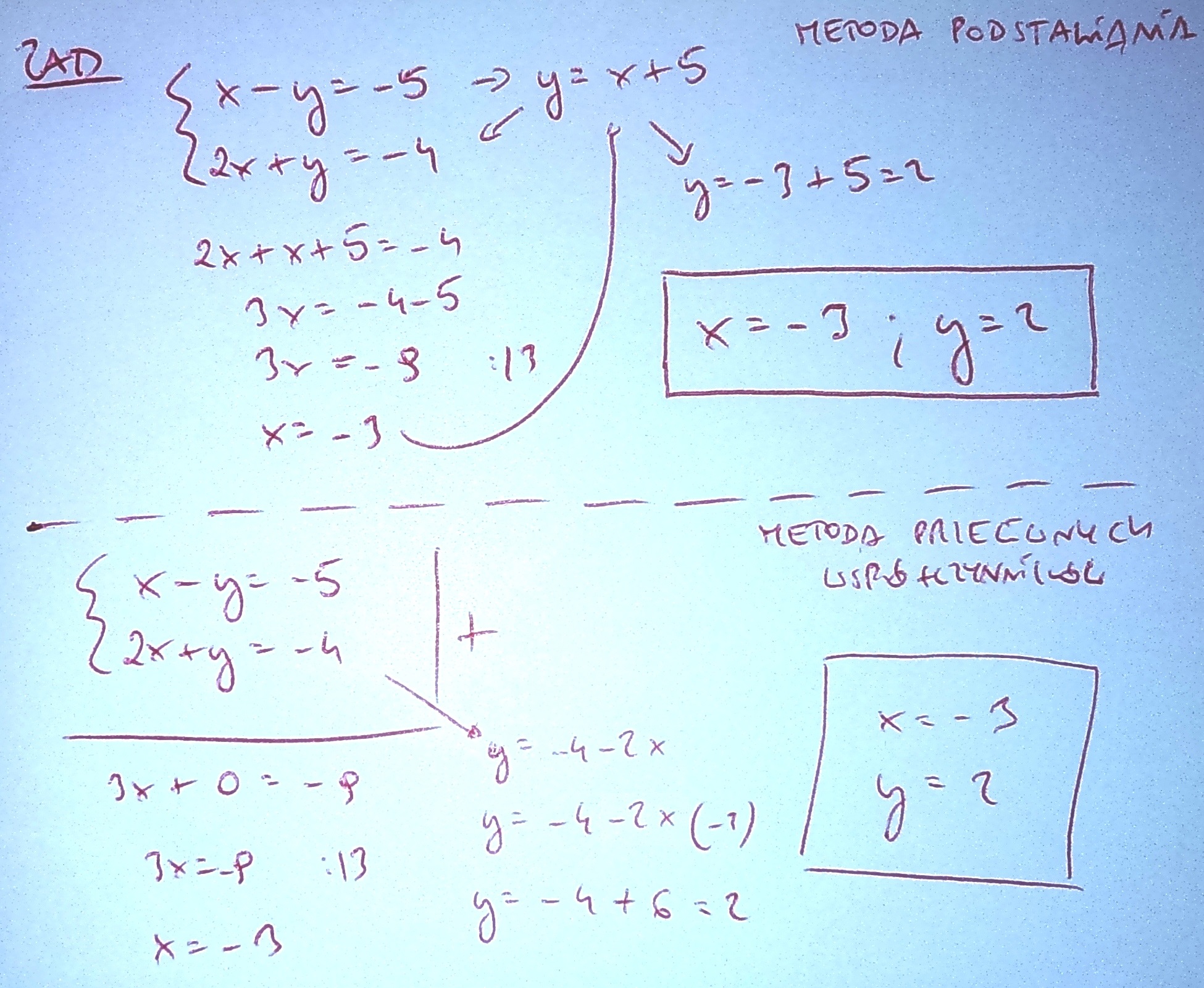 rozwiaz uklad rownan metoda podstawiania przeciwnych wspolszynnikow imetoda graficzna x-y=-5